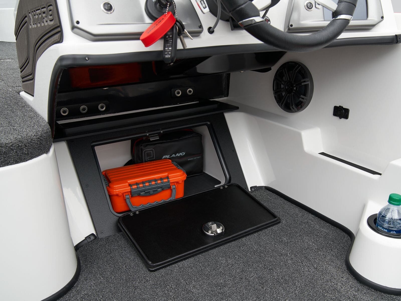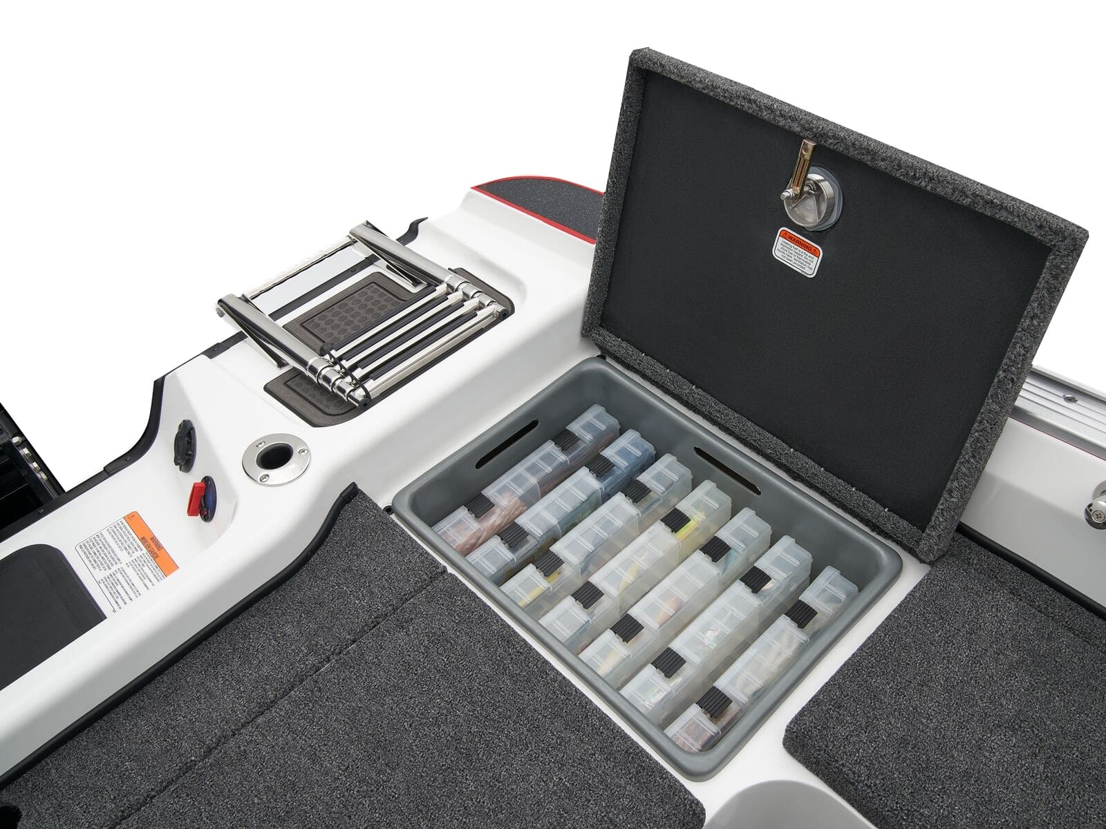 - 2 lift-out, molded & lockable aft storage boxes that will each accept seven 3700 tackle trays