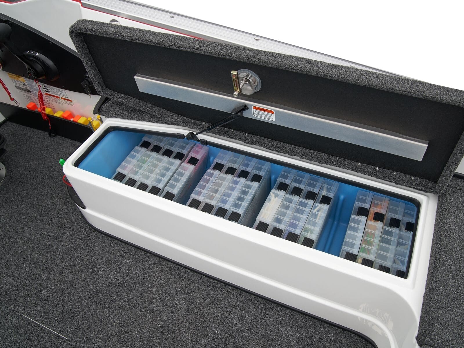 - 2 lift-out, molded & lockable aft storage boxes that will each accept seven 3700 tackle trays