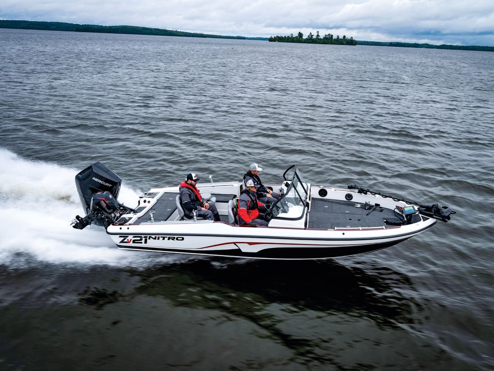 The aggressive Deep V hull, stringer system and deck on the Zv21 are chemically-bonded to form a one-piece structure that flattens swells and soaks up waves with a smooth, dry ride. And for the sprint back to the weigh-in, 400 horses and the new 80-gallon fuel tank deliver unmatched performance no matter how long the run. When it comes to tough conditions, choose the ZV21. It has the muscle to make you a champion.