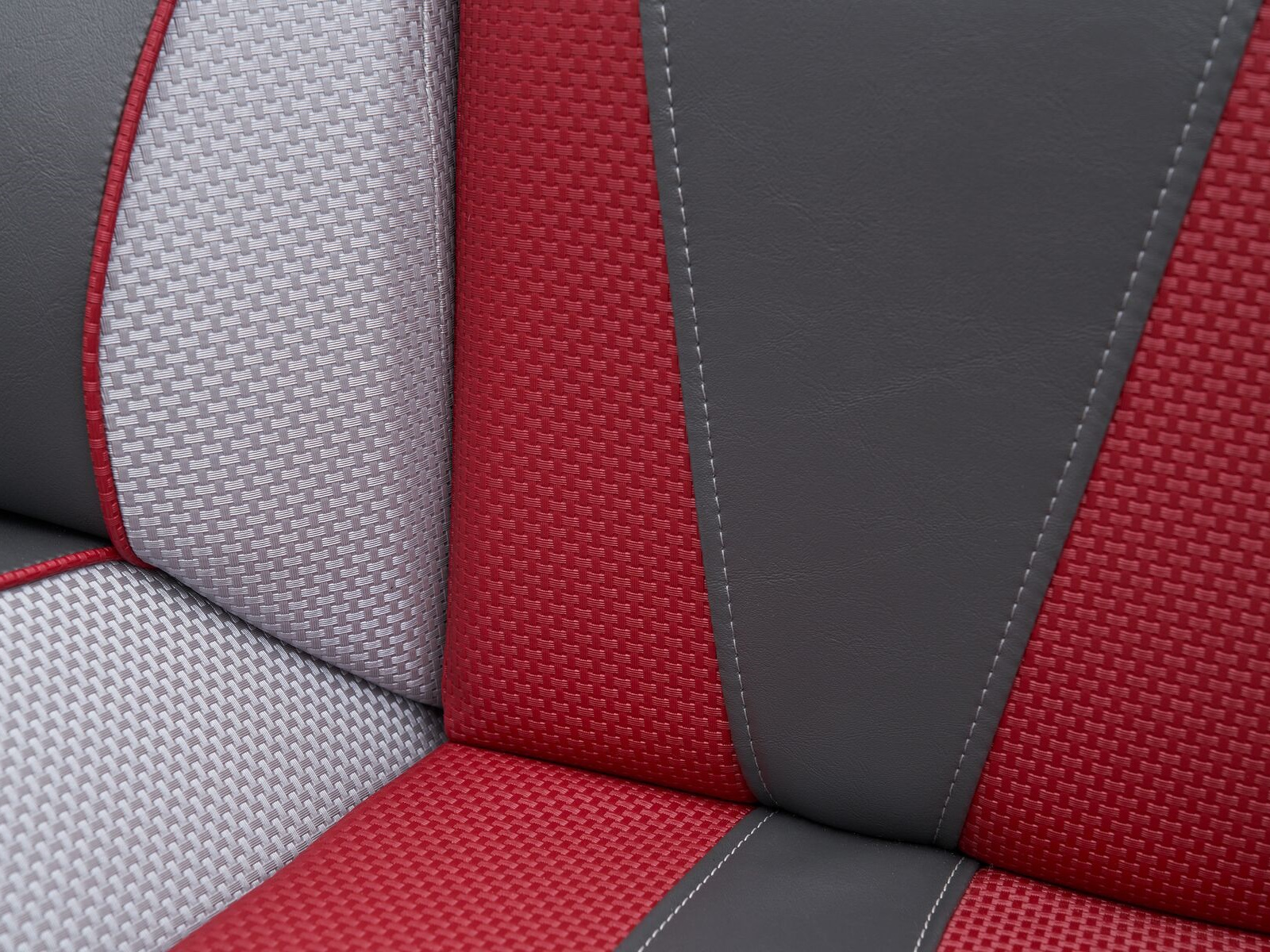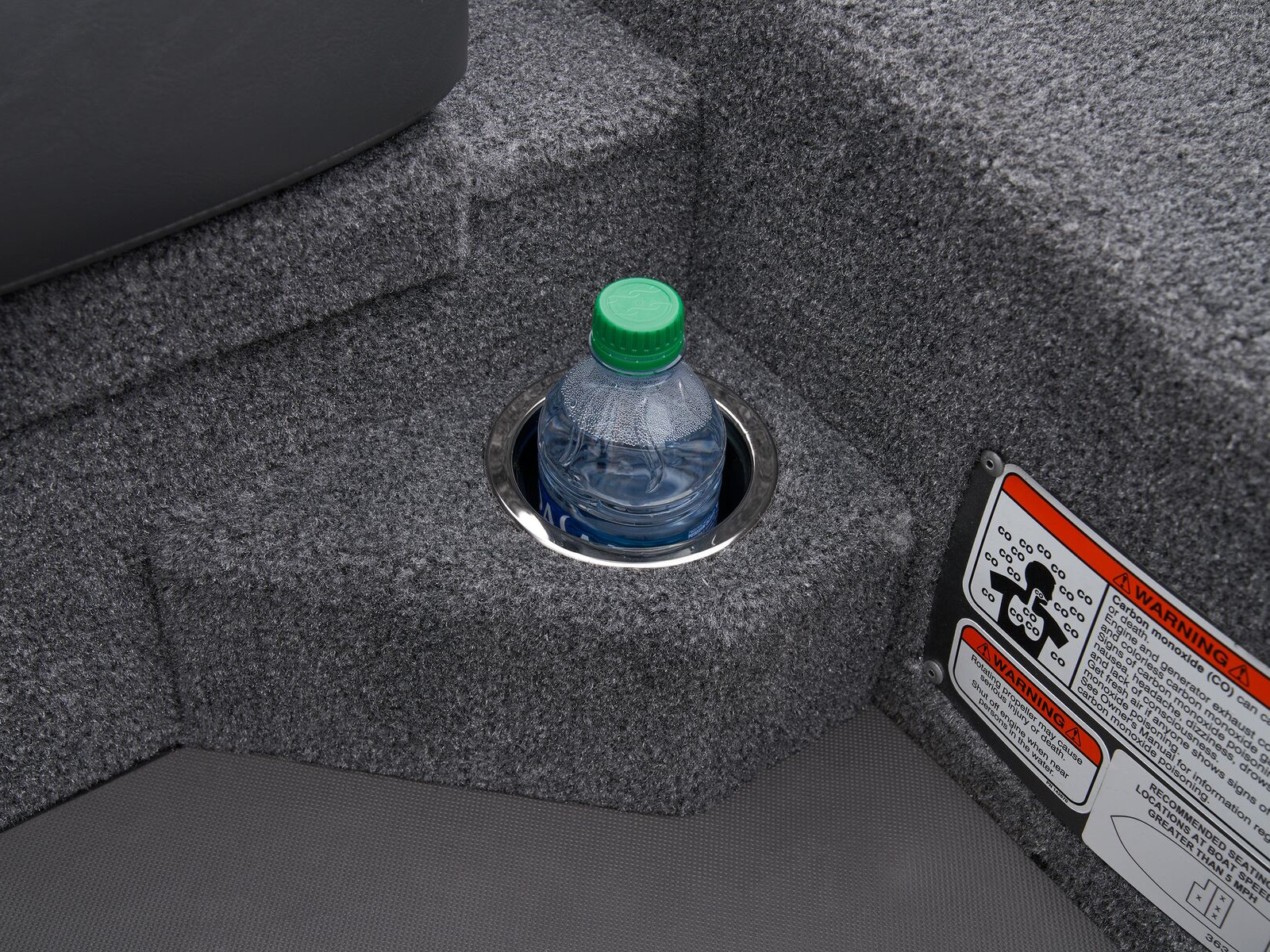 - Custom fitted marine upholstery- driver/passenger bucket seating w/ center fold down & two matching fishing seats