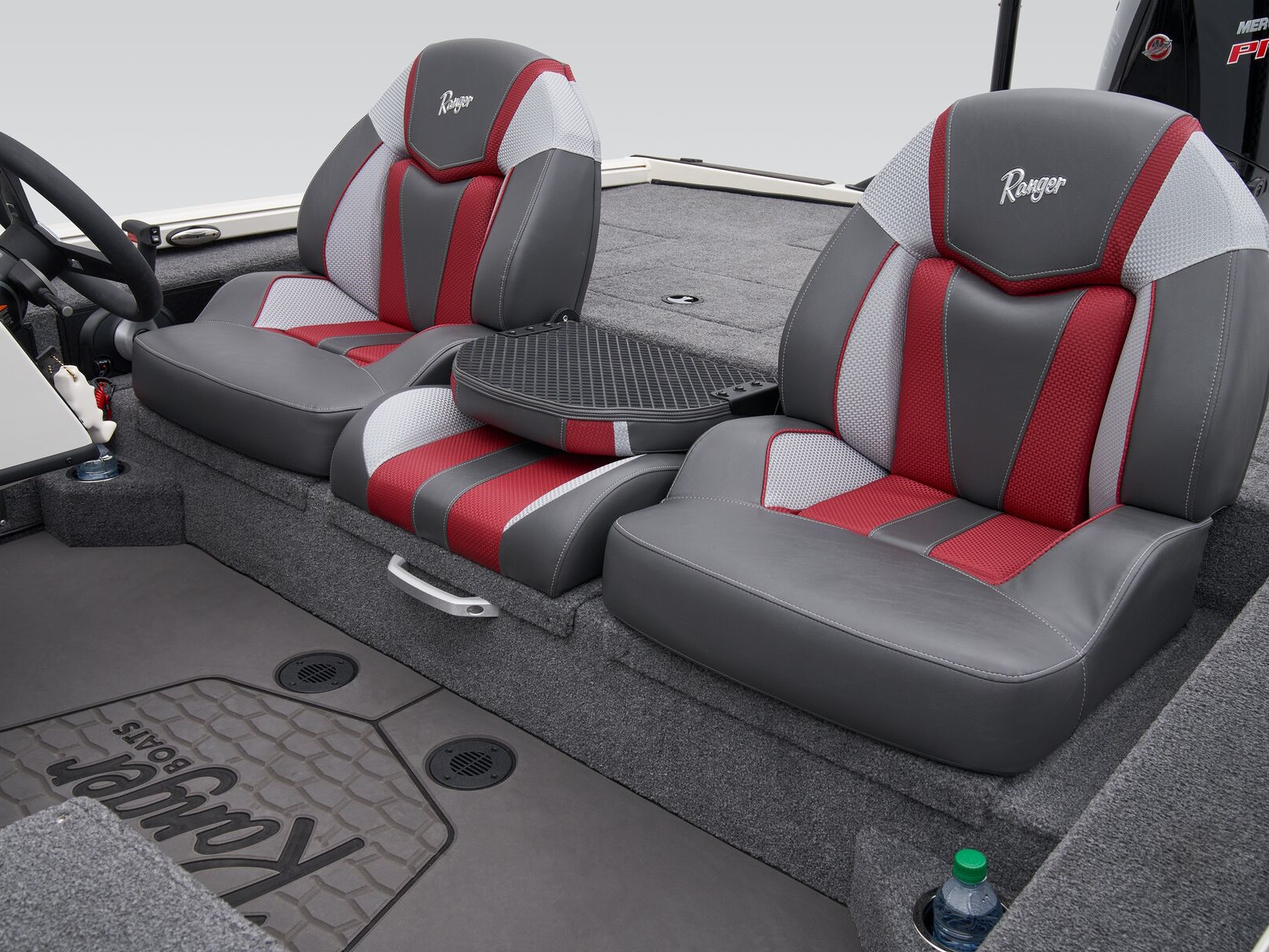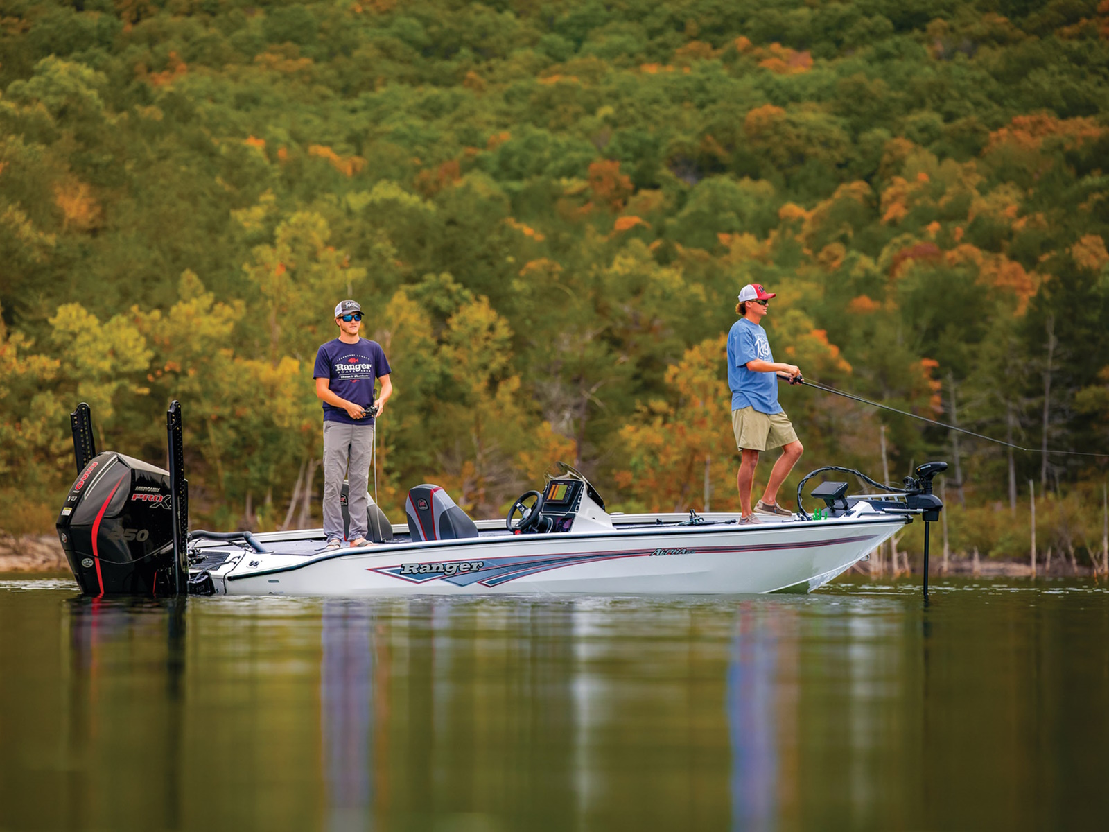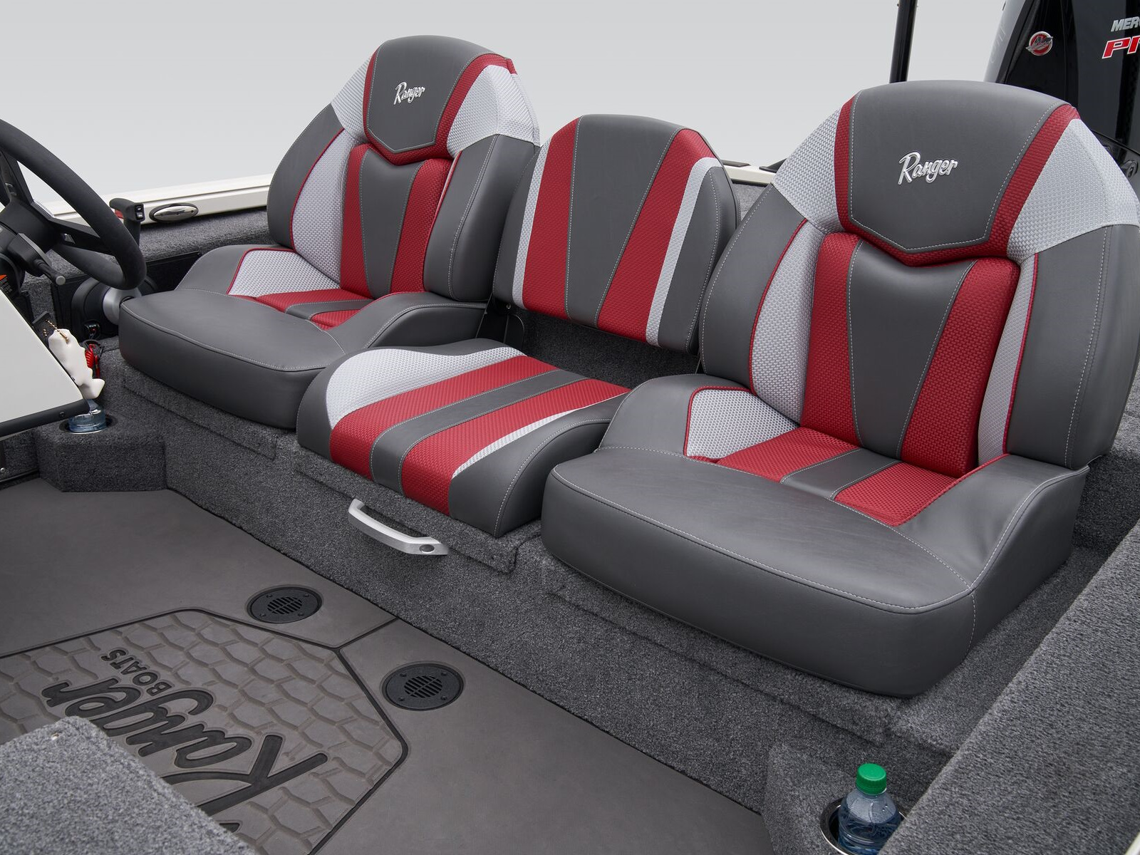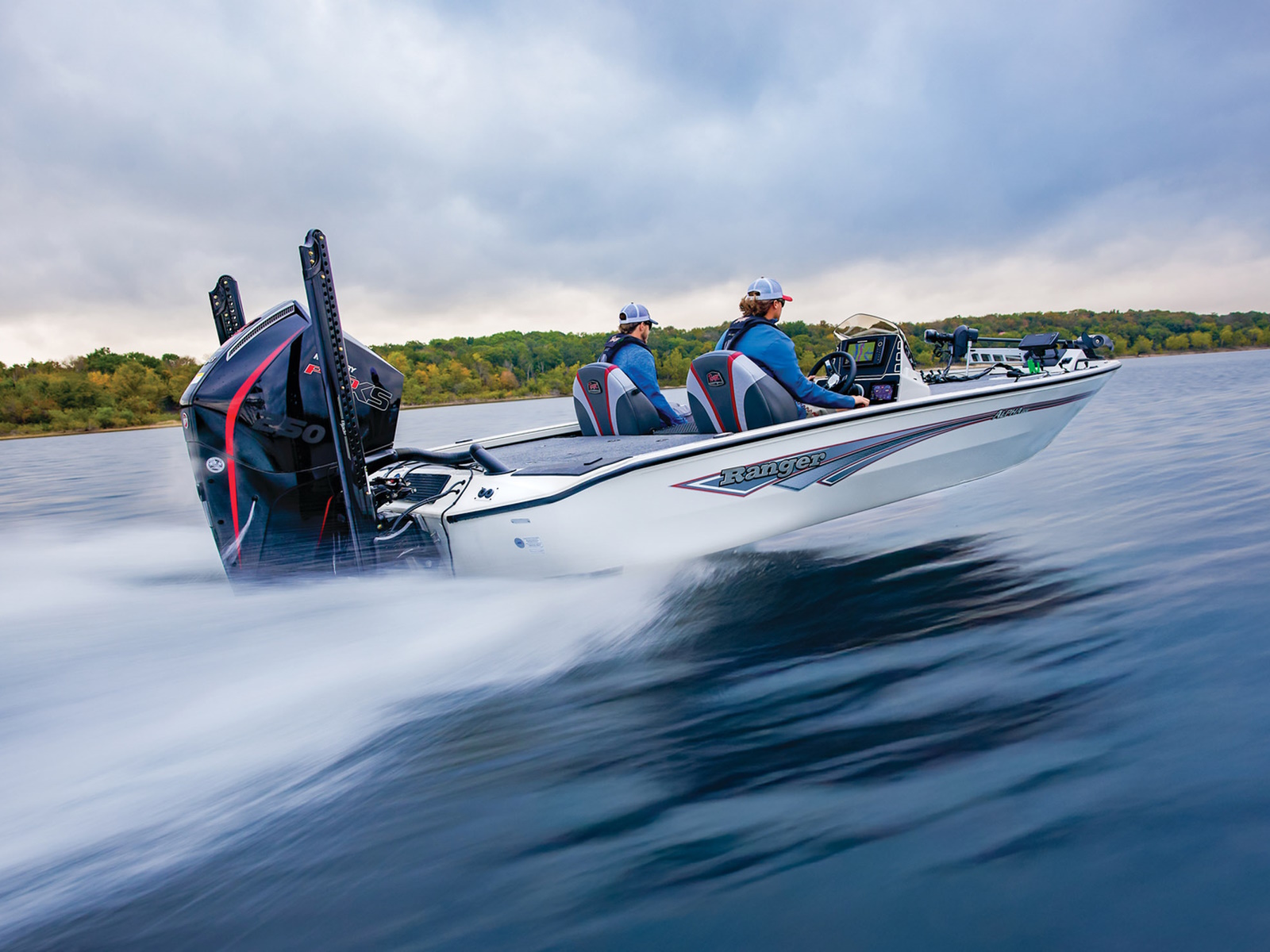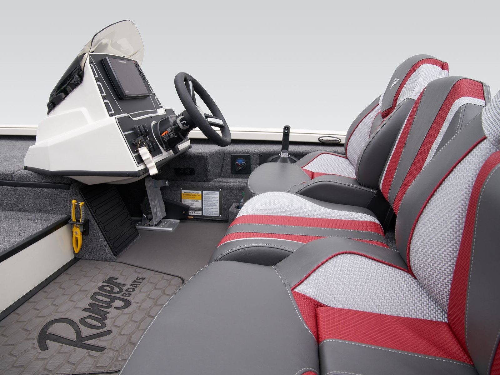 The pad-bottom hull is sculpted for increased all-around performance, from a blistering holeshot and on-rails handling to a screaming top end. With 250 horses at the ready, you’ve got the muscle to hang with anyone, and with legendary Ranger quality, you’ll be doing it with greater peace of mind. Smooth lines do more than please the eye; they’re made to make you forget you’re not in a top-of-the-line fiberglass rig. The setback transom increases hole shot and handling ability, while smoothing the flow of water to the prop, giving you more grip in all conditions. Because it’s a Ranger, you know it’s full of our signature foam flotation that unitizes the hull for our legendary One-Piece-Feel™construction.
