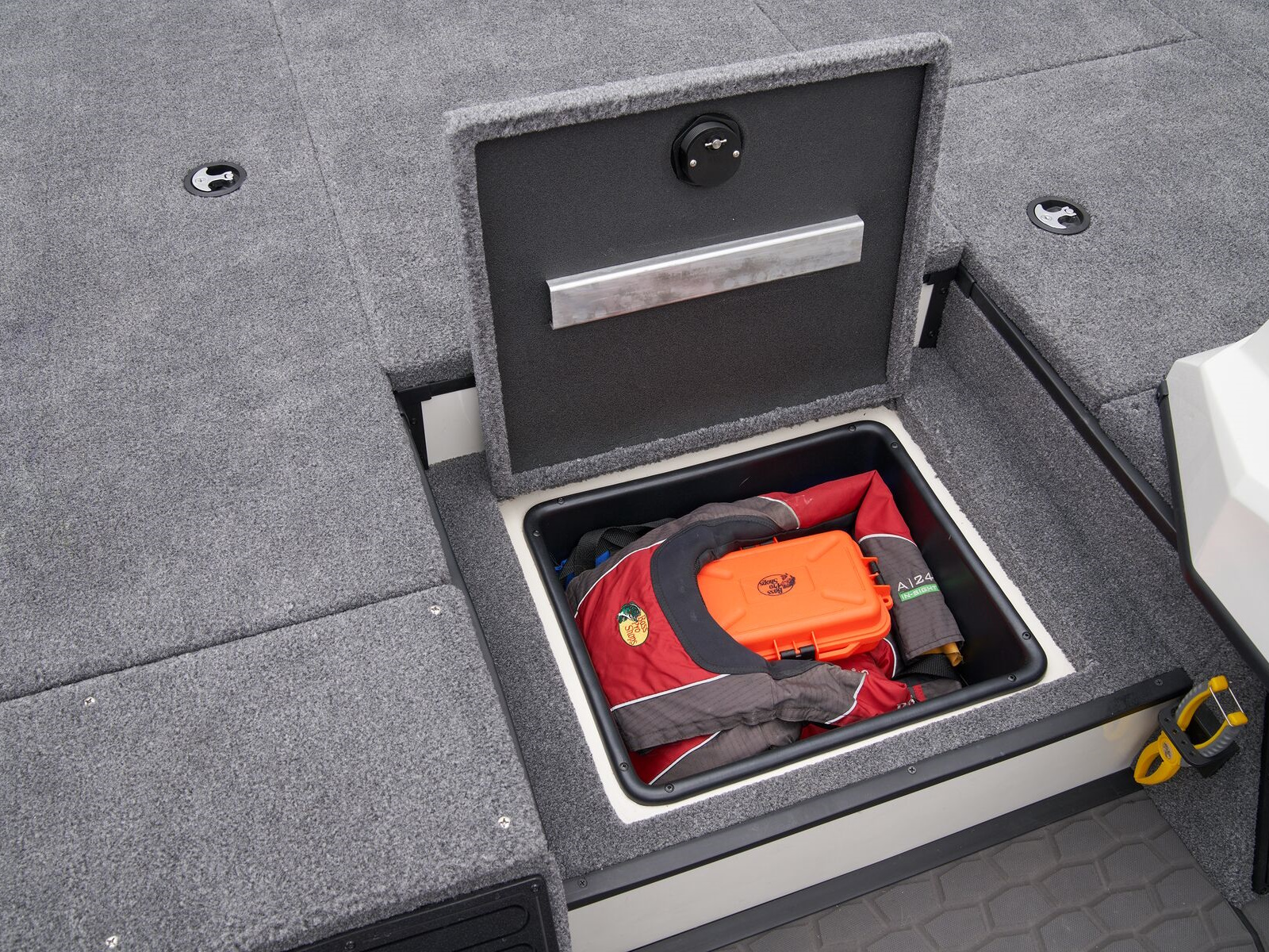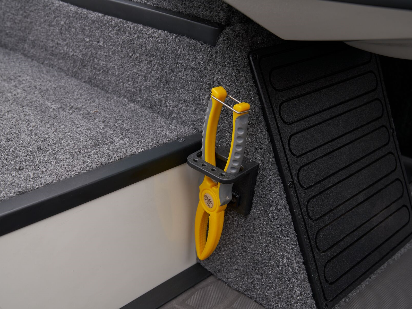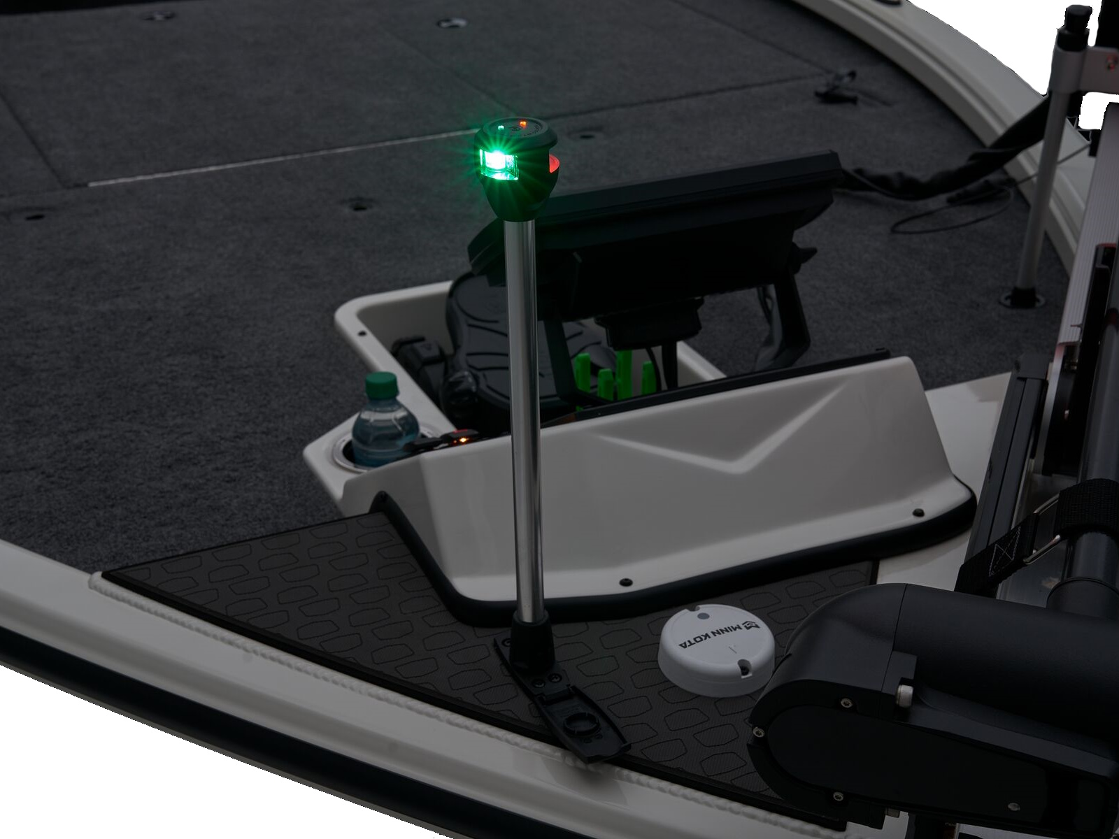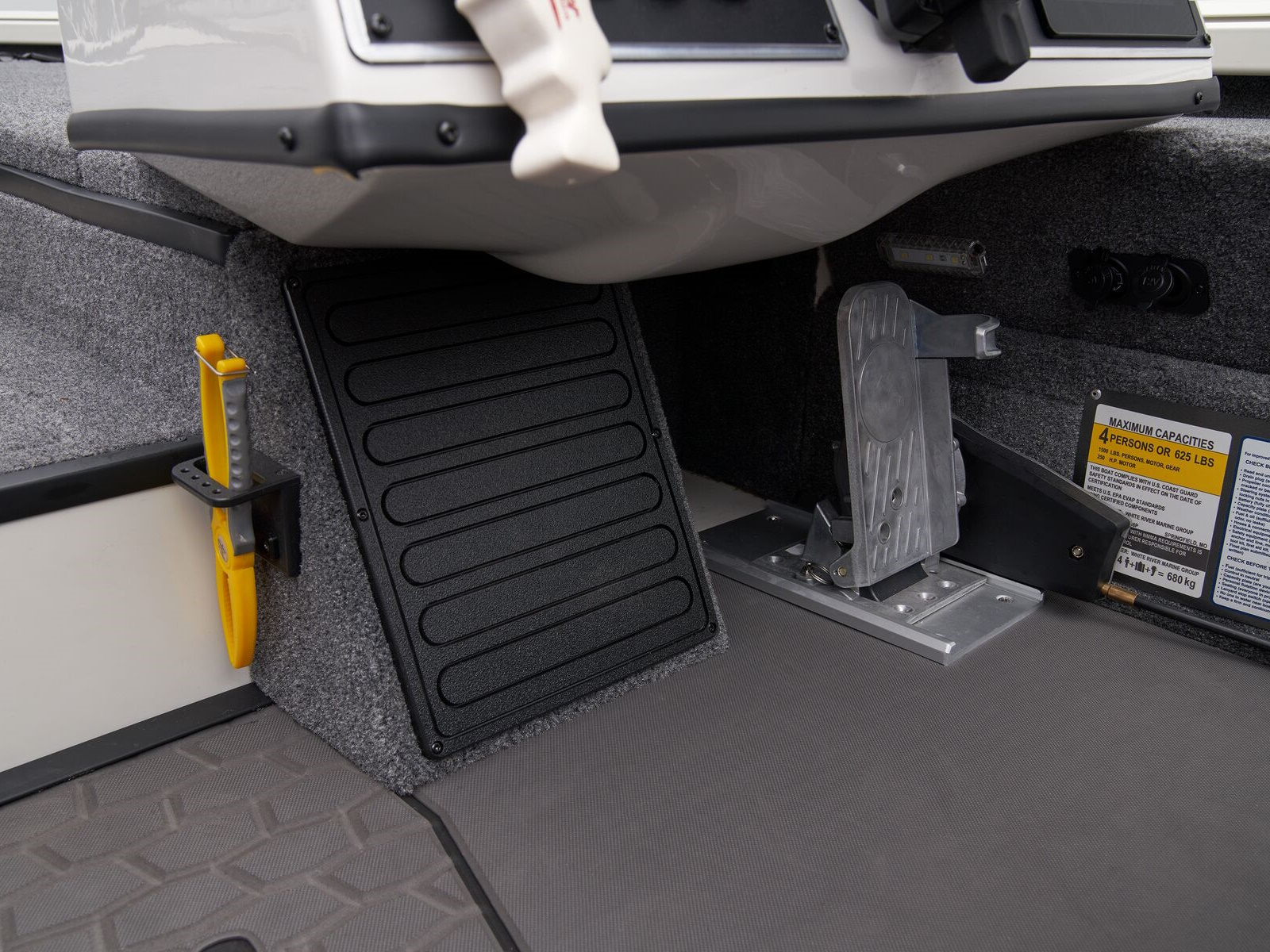 - Custom fiberglass console w/ flush-mounted depthfinder & easy touch switching