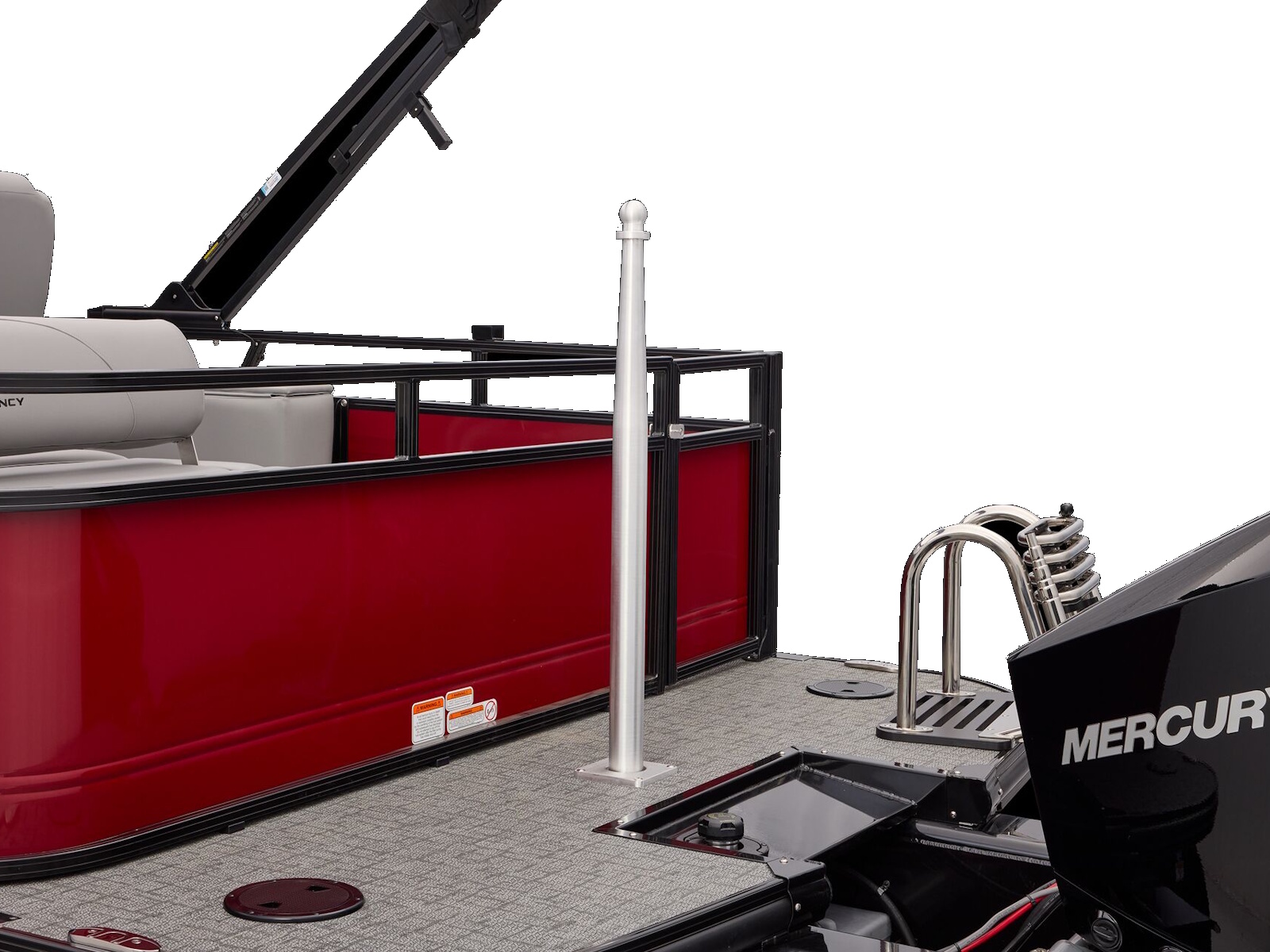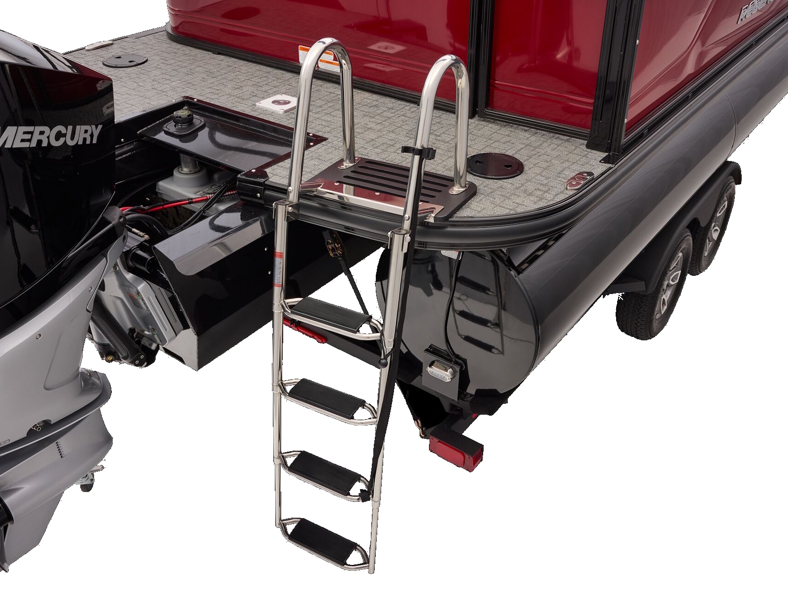 - All-welded, all-aluminum extended motor pod w/built-in EPA-compliant fuel system