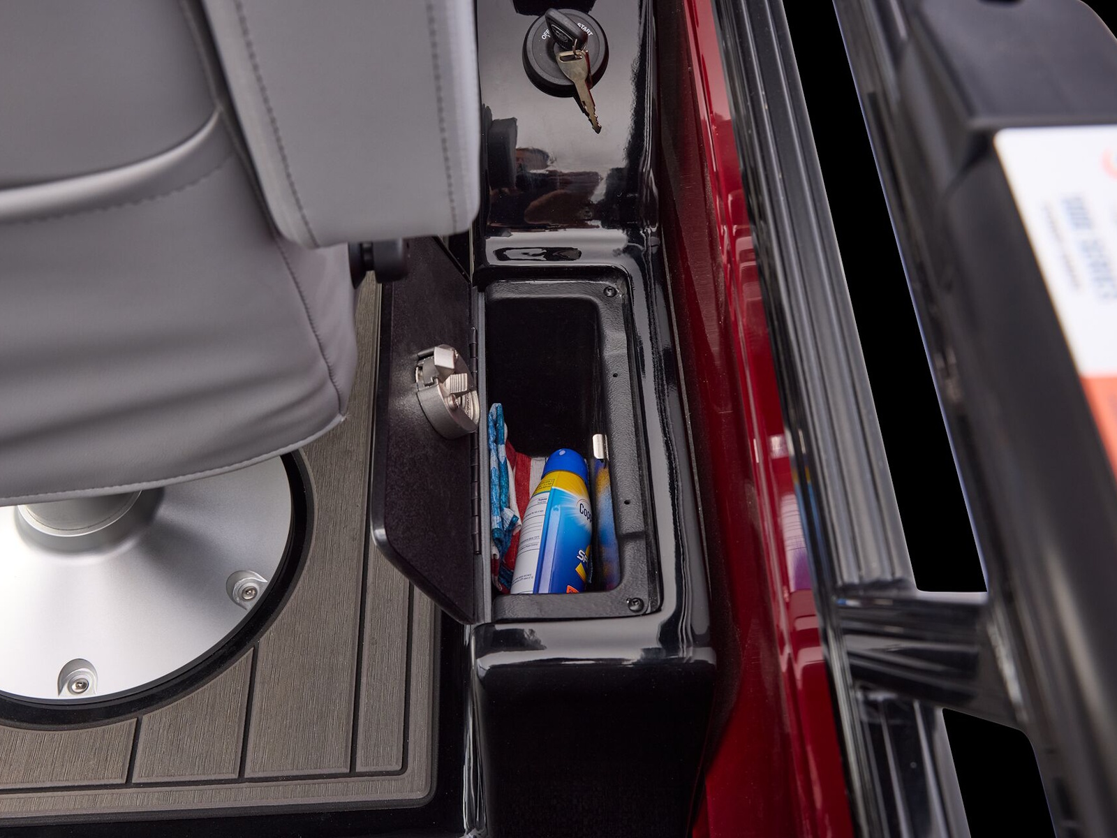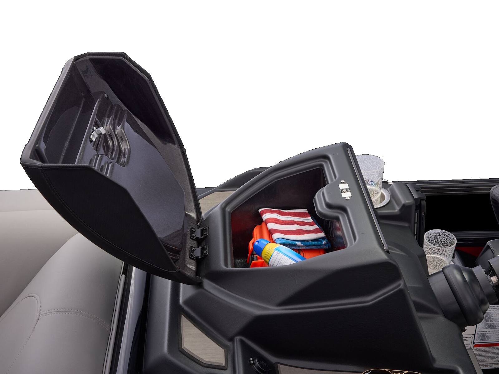 - NEW raised helm design & console top w/integrated glovebox & drink holder