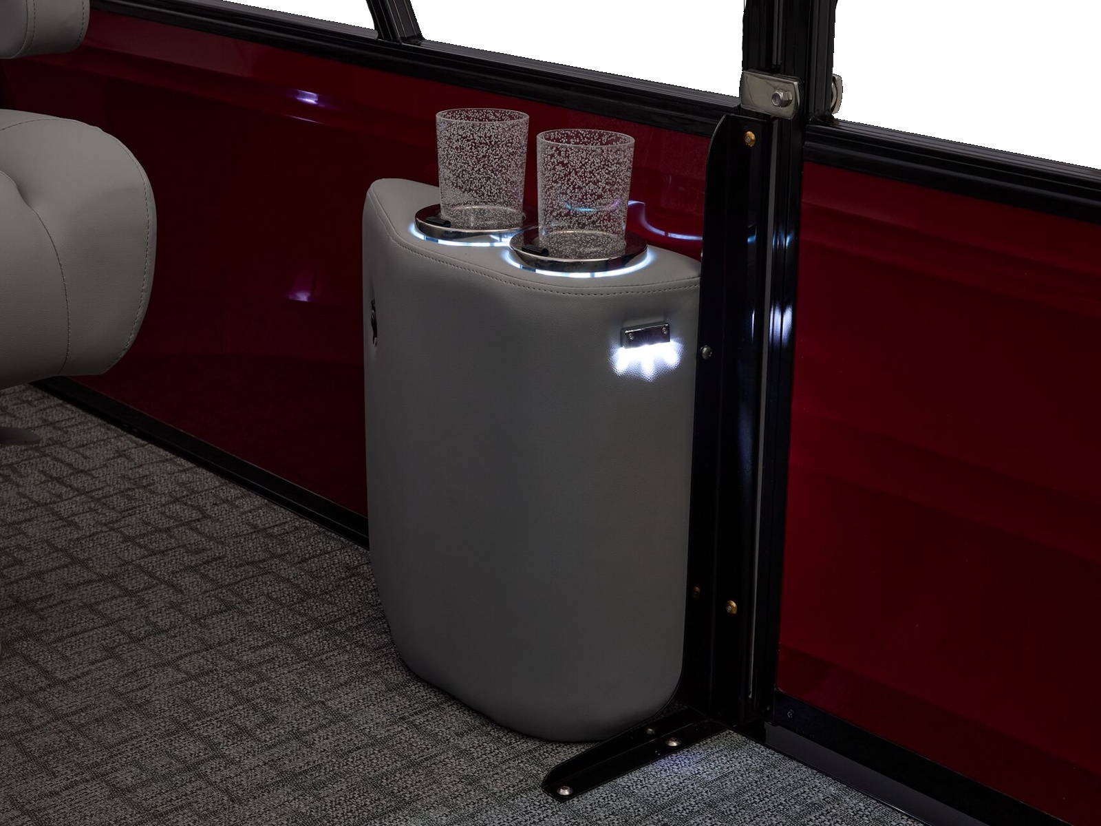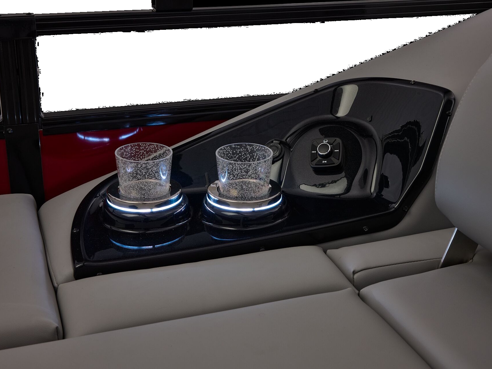 Outside, bold TRACK FORMED® fencing and DIAMOND COAT™ 3.0 finish make a striking impression, while a full RGB lighting package—illuminating drink holders, speakers, and exterior accents—creates an atmosphere that moves with your music.