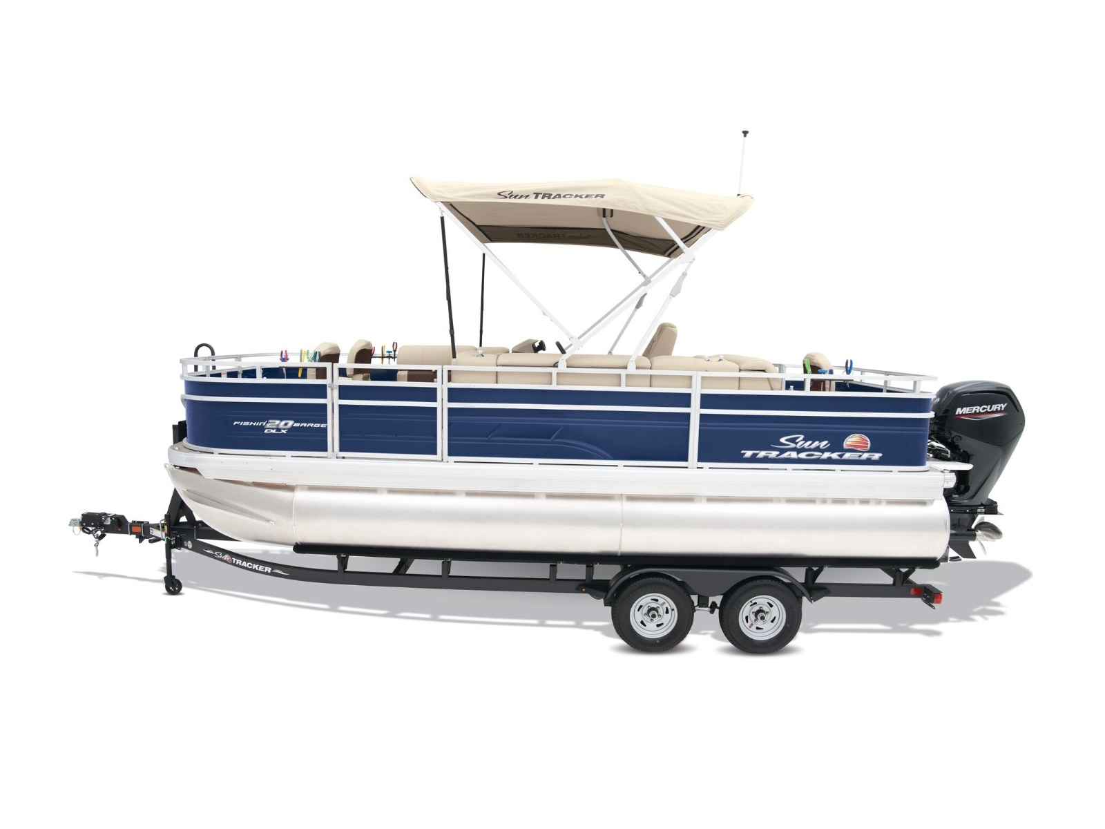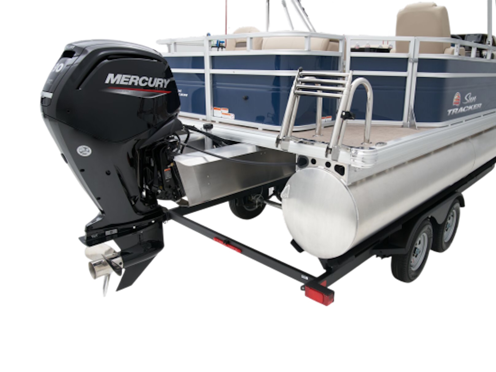 The FISHIN' BARGE® 20 DLX comes standard with a 90hp Mercury® ELPT FourStroke outboard motor and has a recommended maximum 90hp rating.