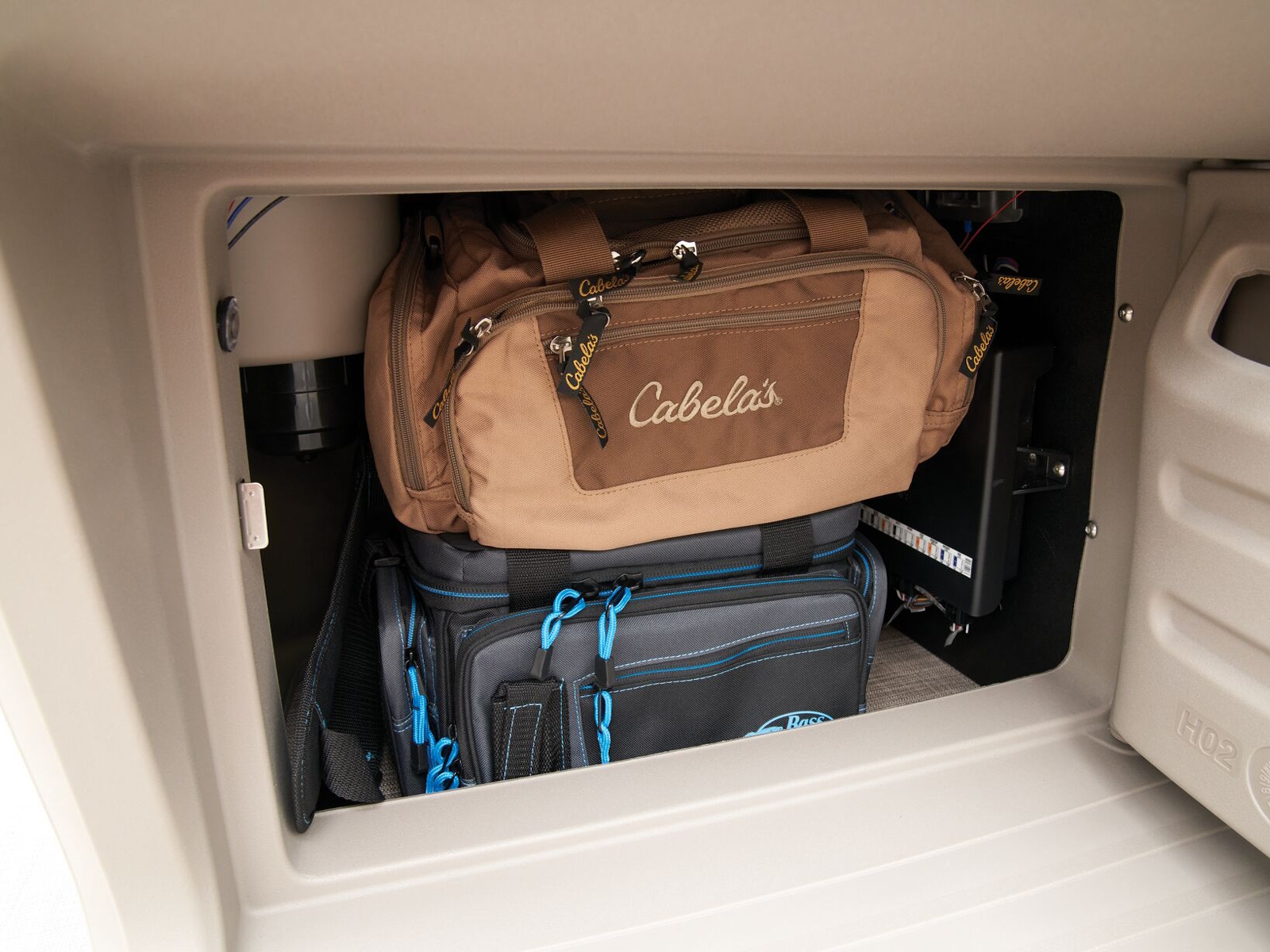 - Aft L-lounge couches w/STOW MORE™ & underseat, lockable storage
