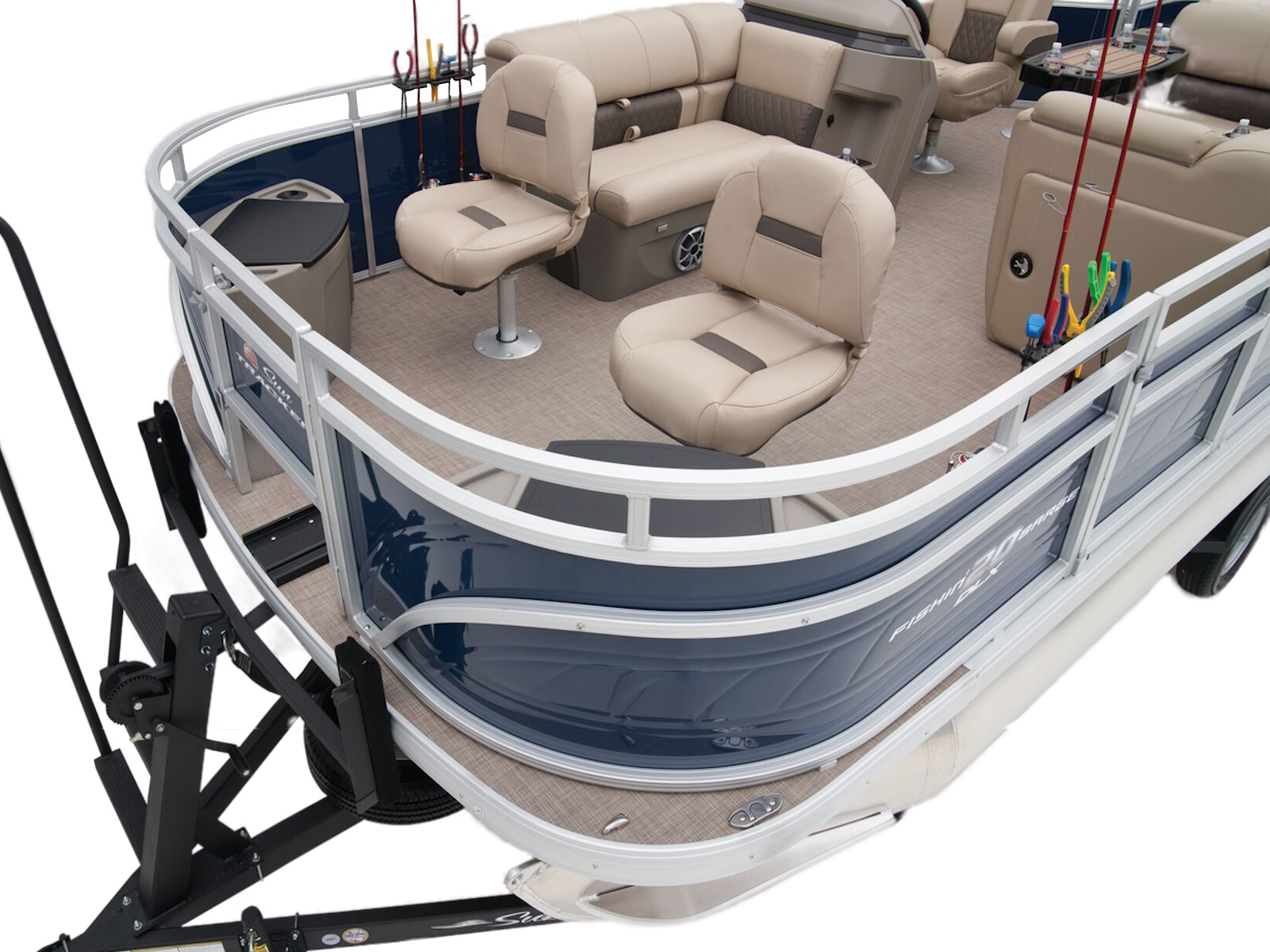 The 2025 FISHIN' BARGE® 20 DLX takes fun seriously, and you will too when you're casting lines with the family from its 19' deck.