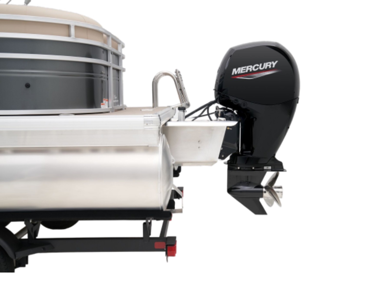 The PARTY BARGE® 22 DLX comes standard with a 90hp Mercury® ELPT FourStroke outboard motor and has a recommended maximum 150hp rating.