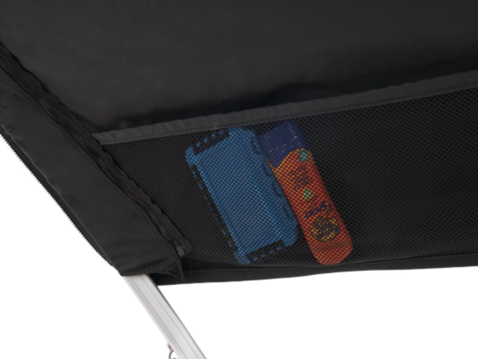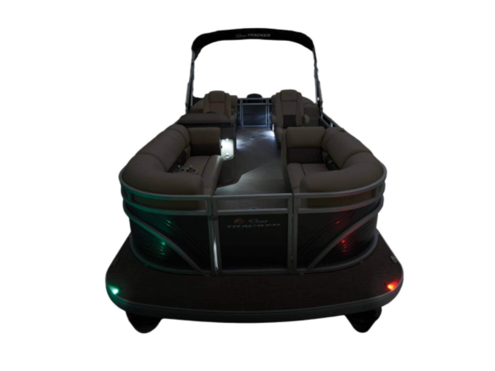 - 10' (3.05 m) SUN TRACKER® QuickLift™ Bimini top w/LED courtesy lights, storage pockets & protective boot (color-coordinated Black w/Charcoal fencing or Sand w/Copper Red fencing)