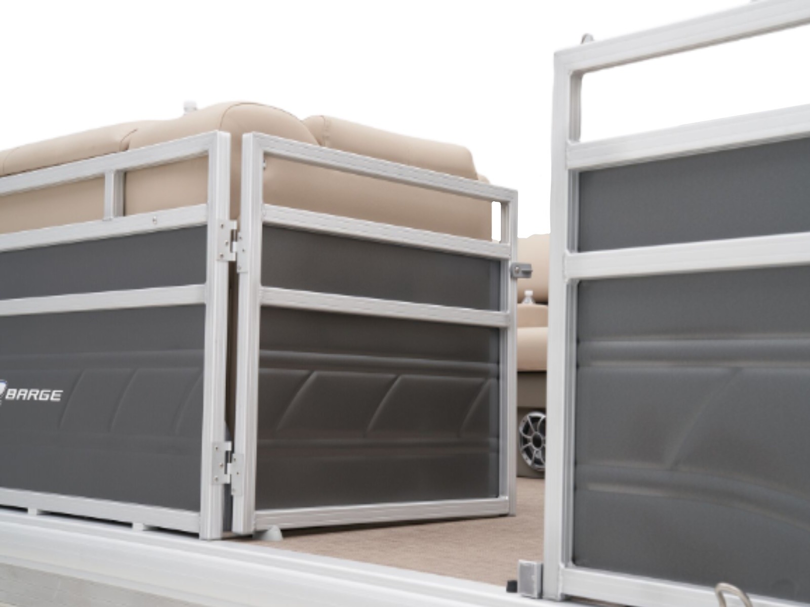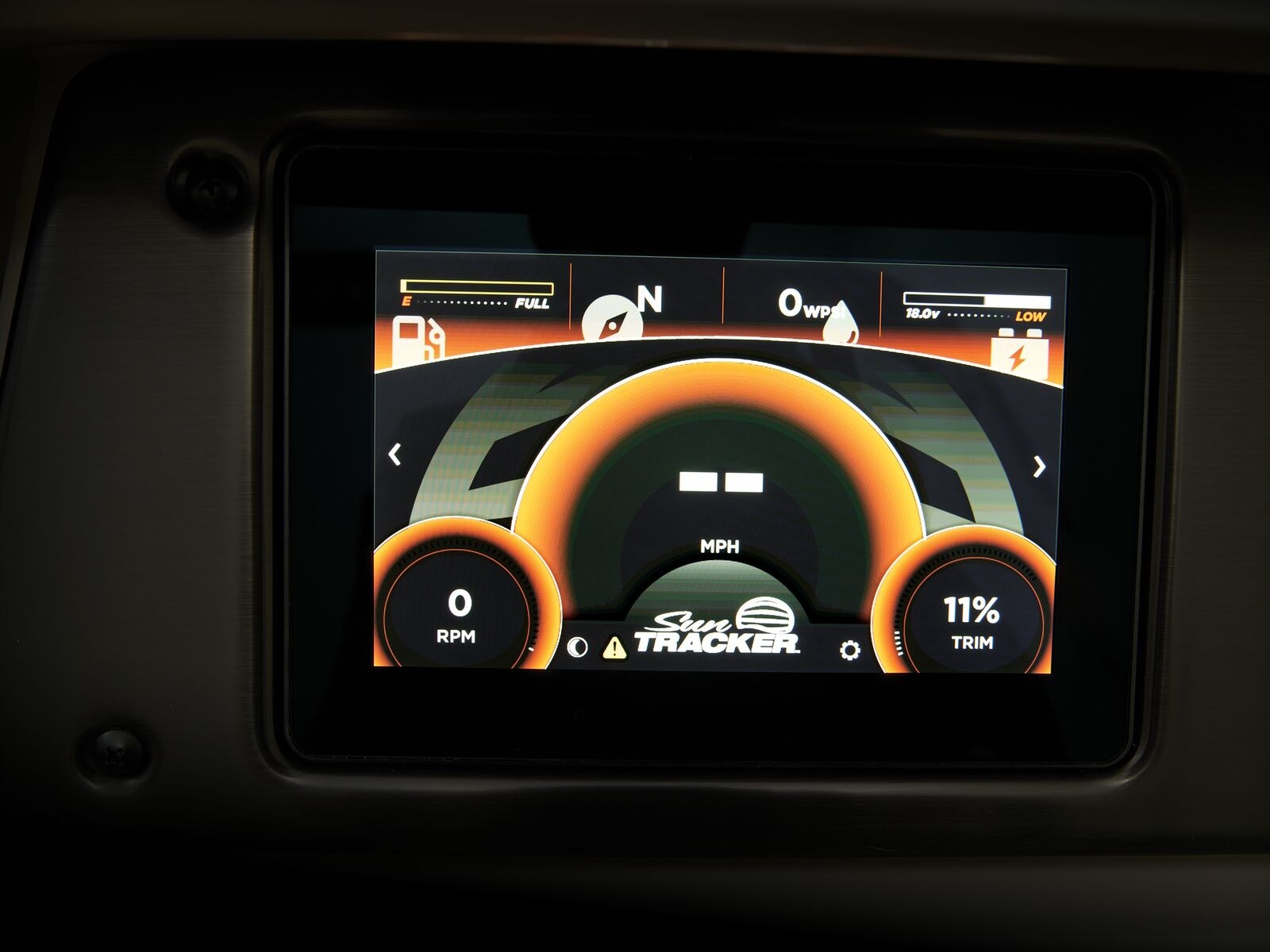 Board the boat via the 3 gates that swing inward to keep guests safe. The port gate is wide enough to accommodate wheelchairs. Jump into the water from 2 full-width swim decks and reboard easily with the 4-step telescoping ladder. The 10' QuickLift® bimini top features LED courtesy lights, storage pockets, and a protective boot. The pilot can control all the fun through the new console with the SUN TRACKER FLAREtouch-screen gauge display and 12-button switch panel.