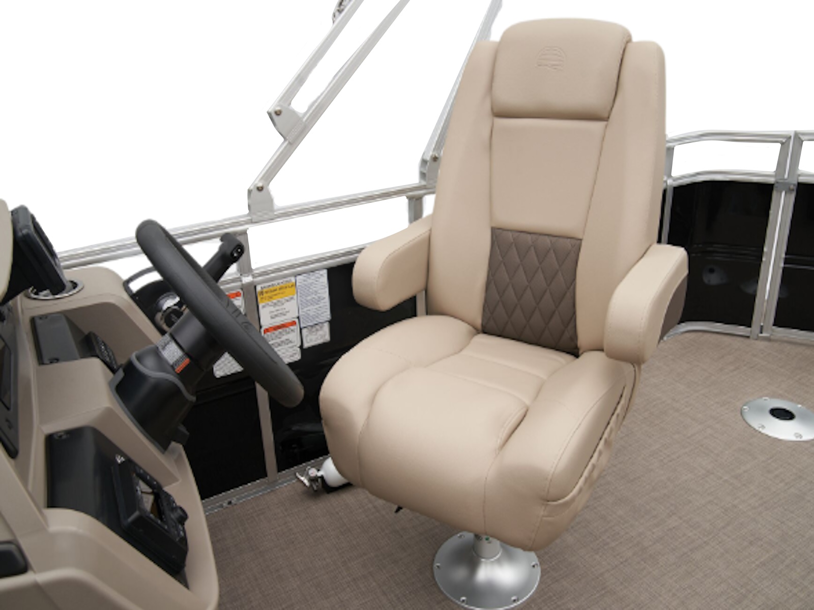 - Reclining, high-back swiveling helm bucket seat w/self-leveling armrests
