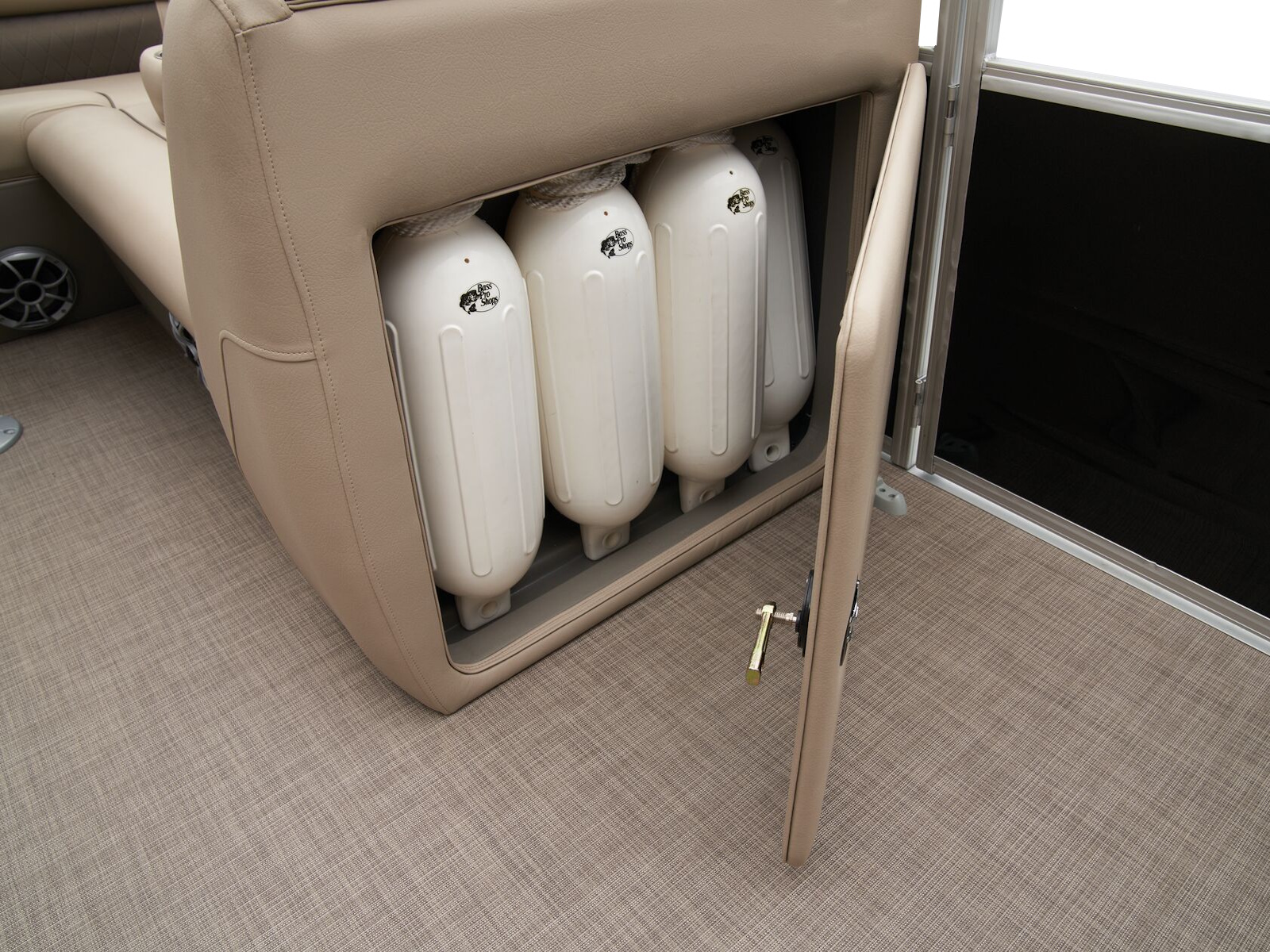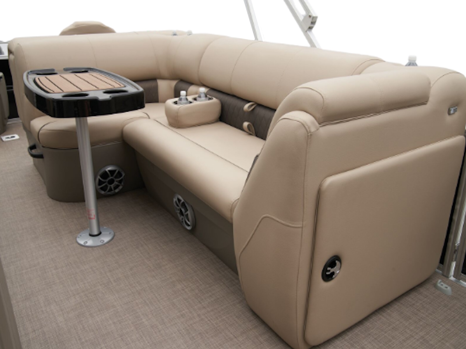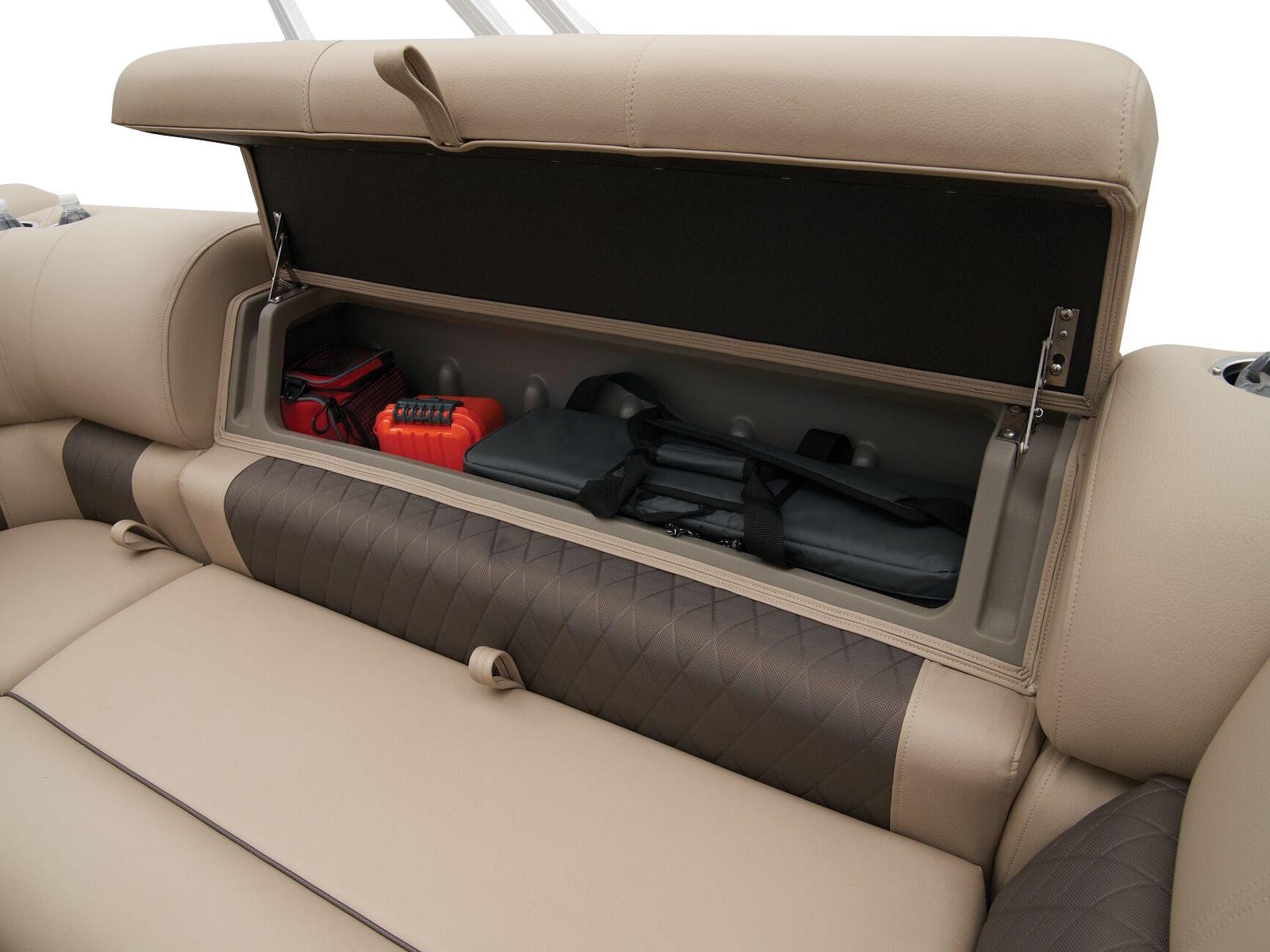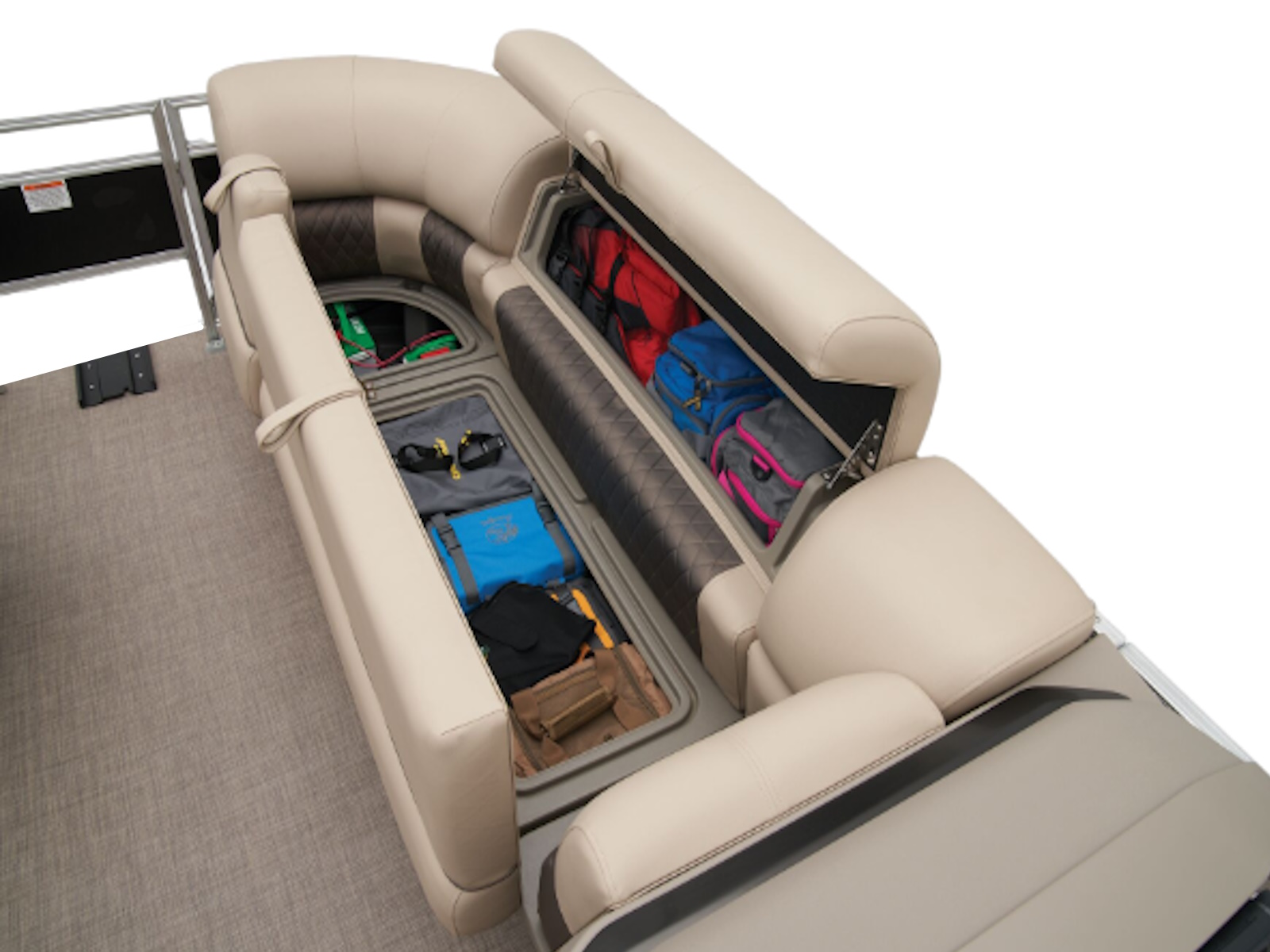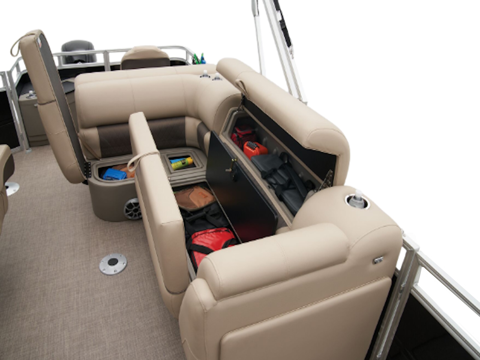 - Aft L-lounge couches w/STOW MORE™ & underseat, lockable storage