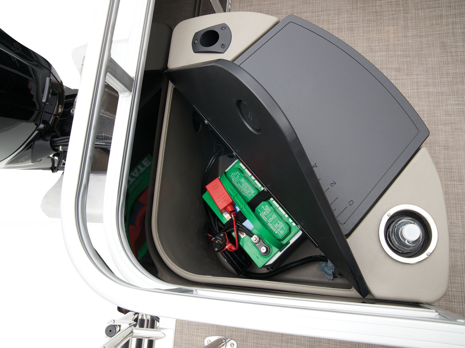 - Easy-access marine-grade automotive-style fuse panel w/latching fuse block door