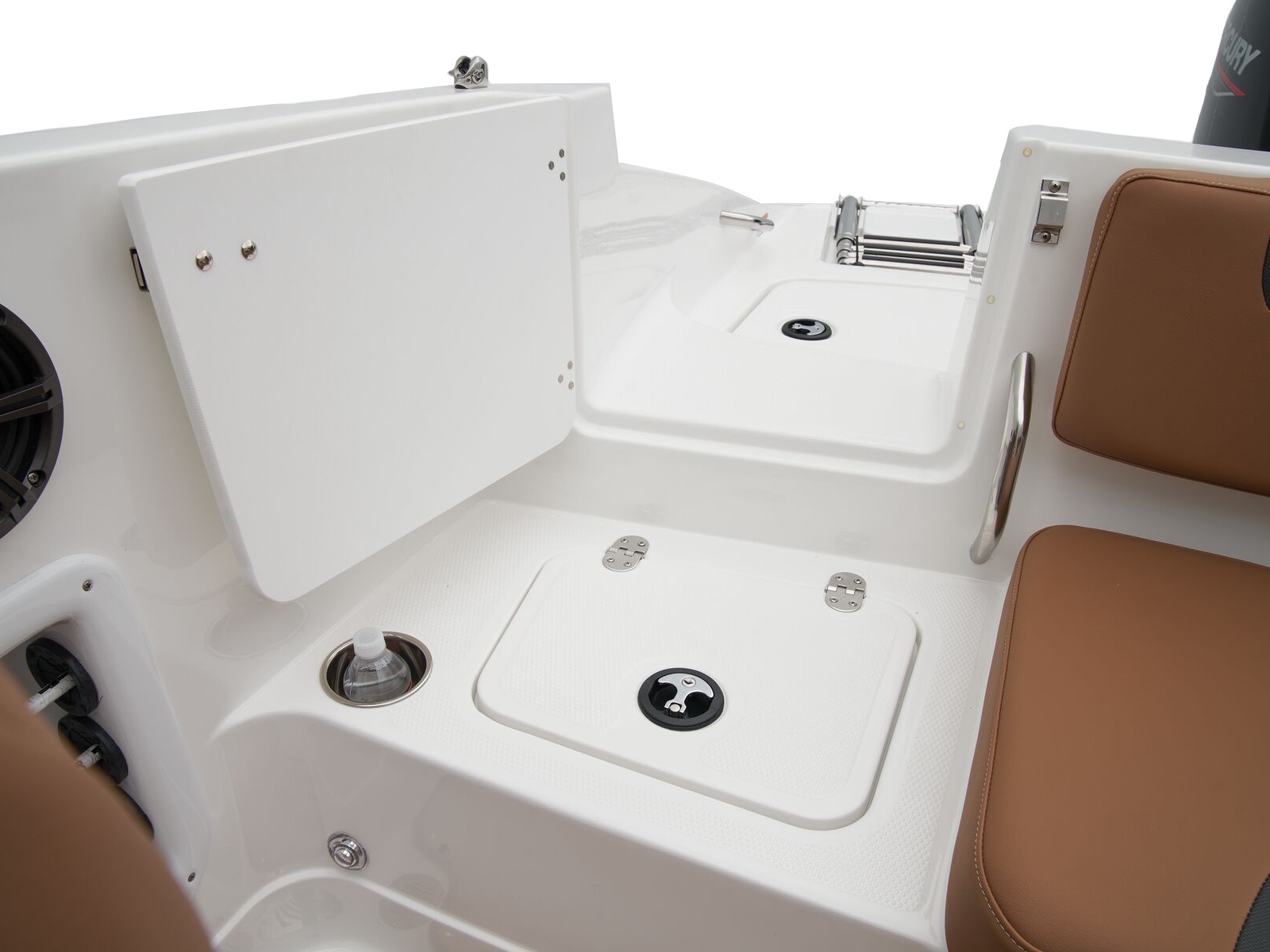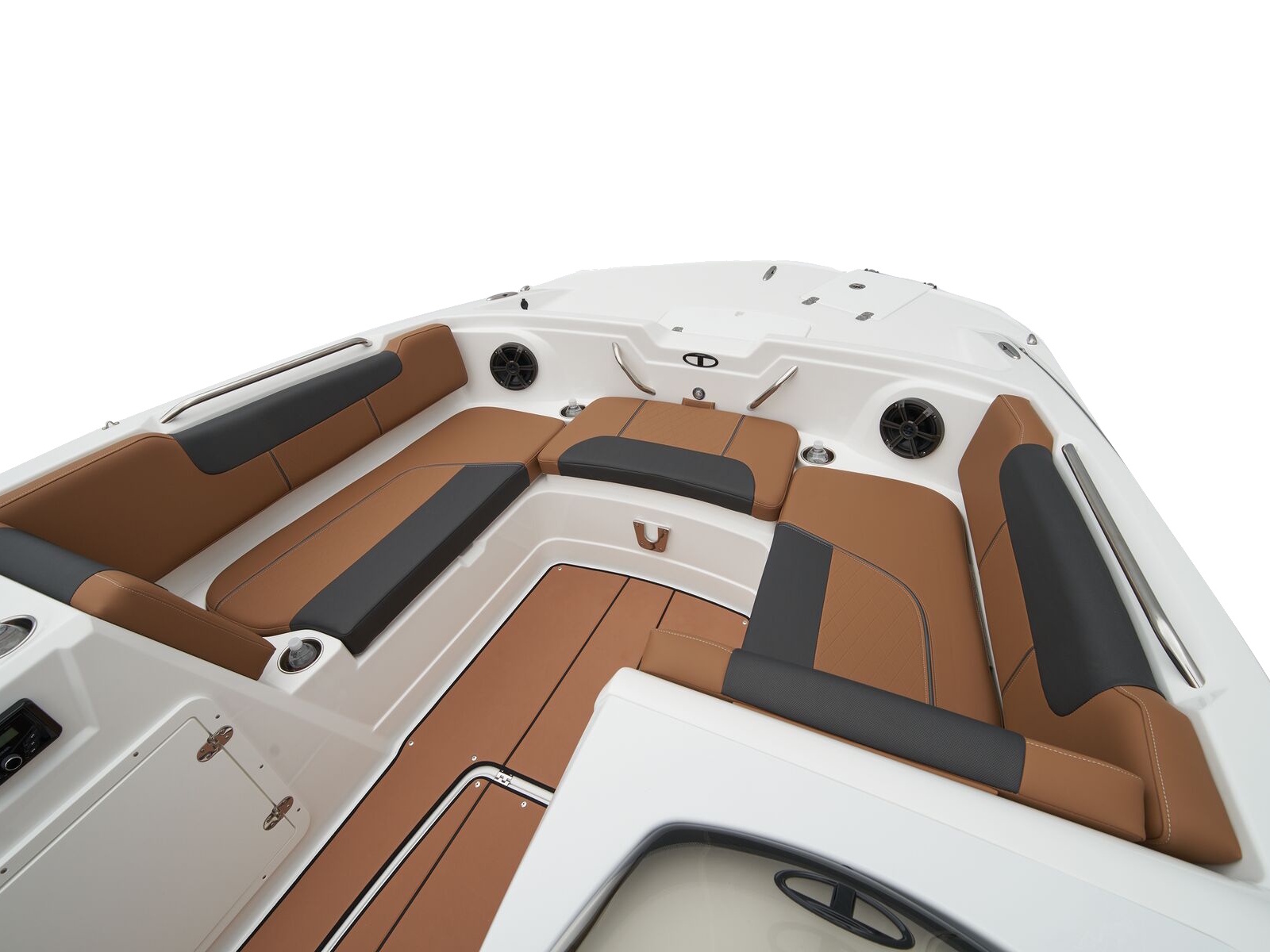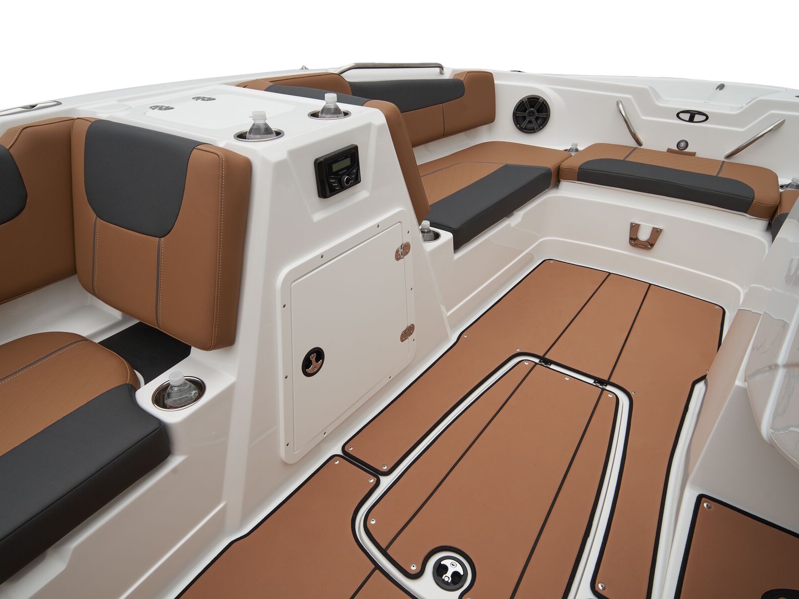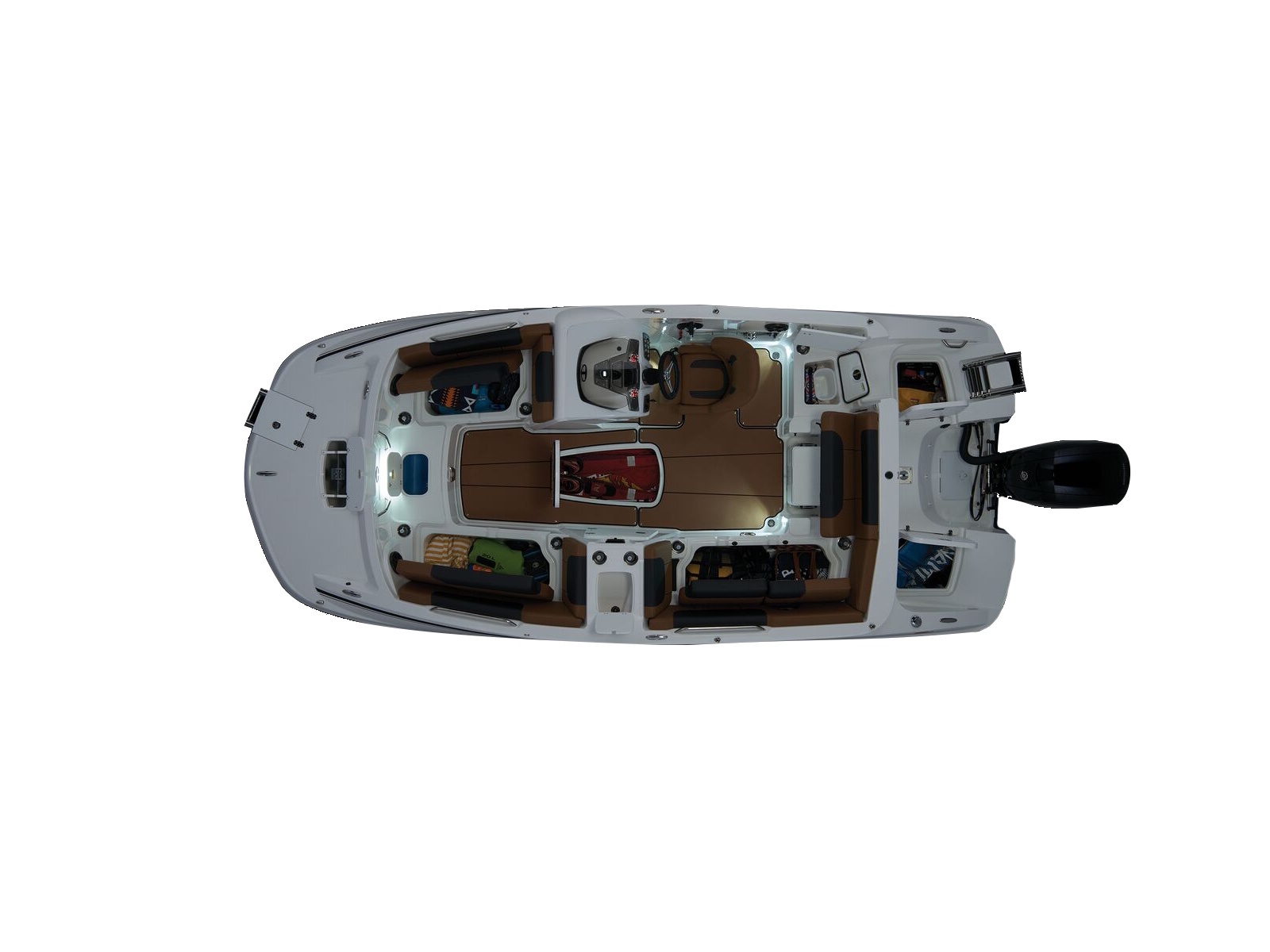 - Aft L-lounge w/storage, tow rope holder & removable 25-qt. (23.66 L) cooler