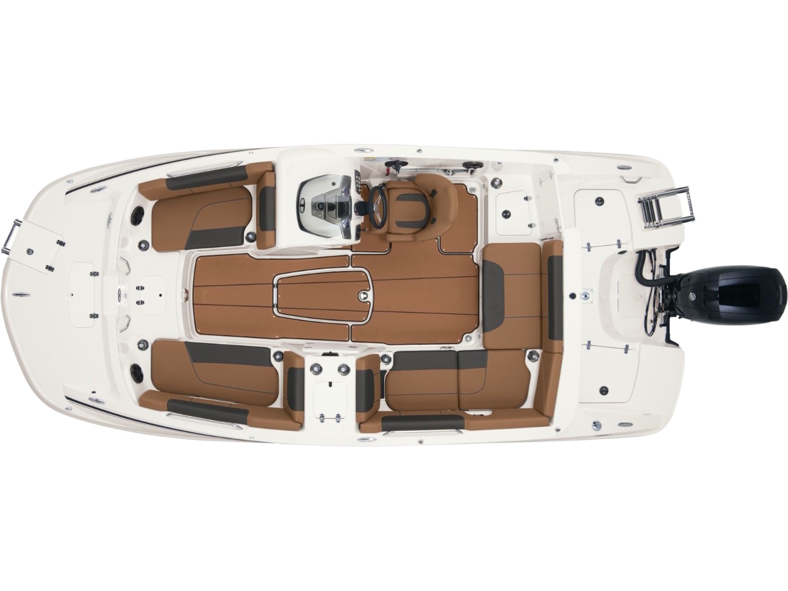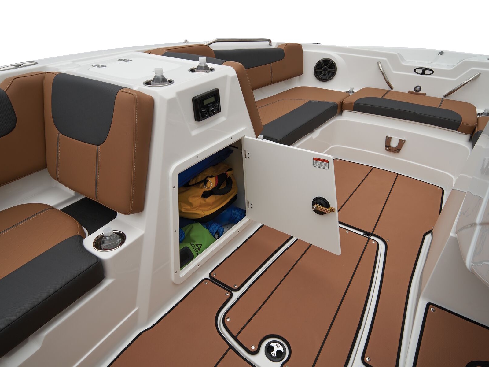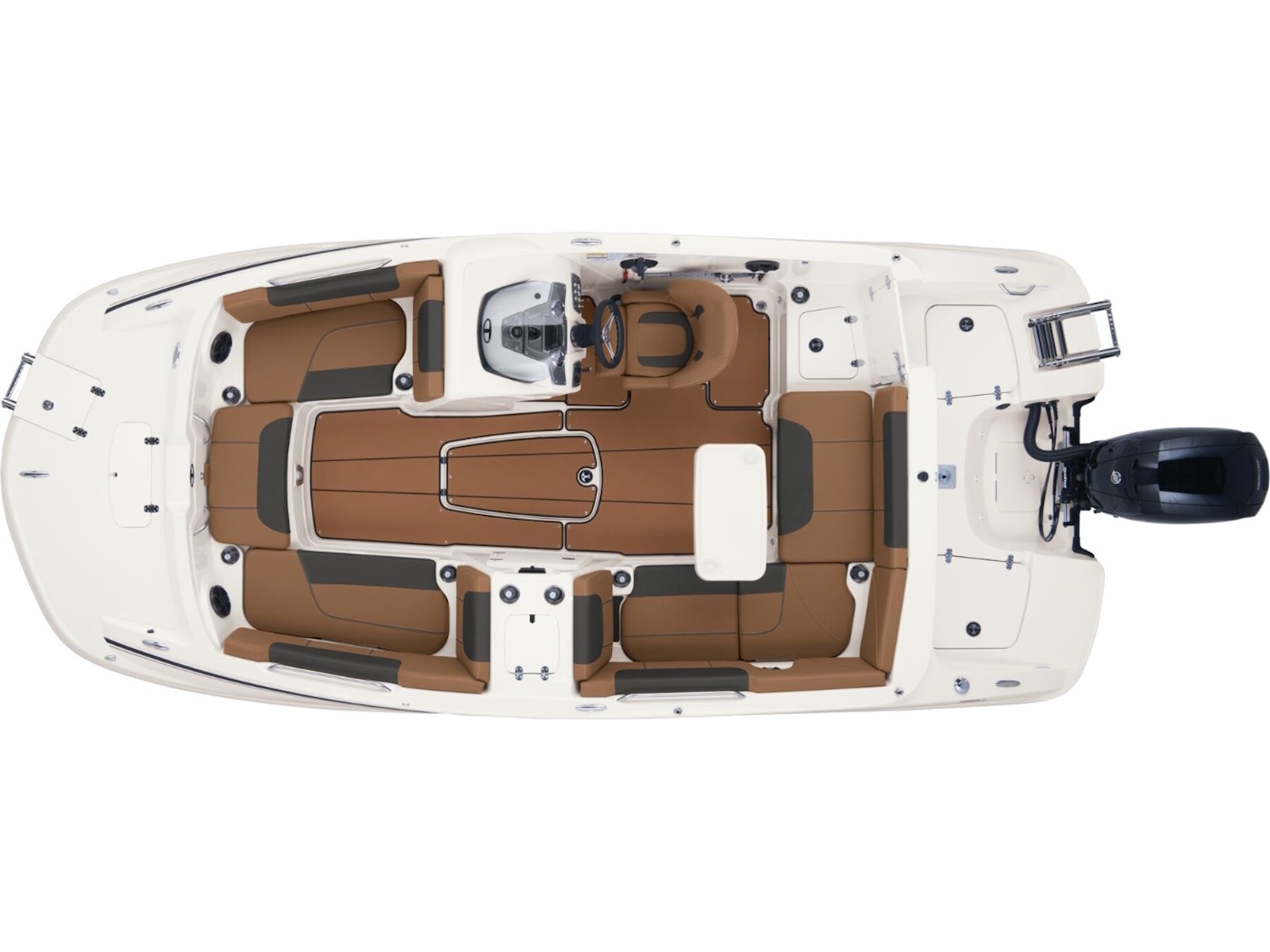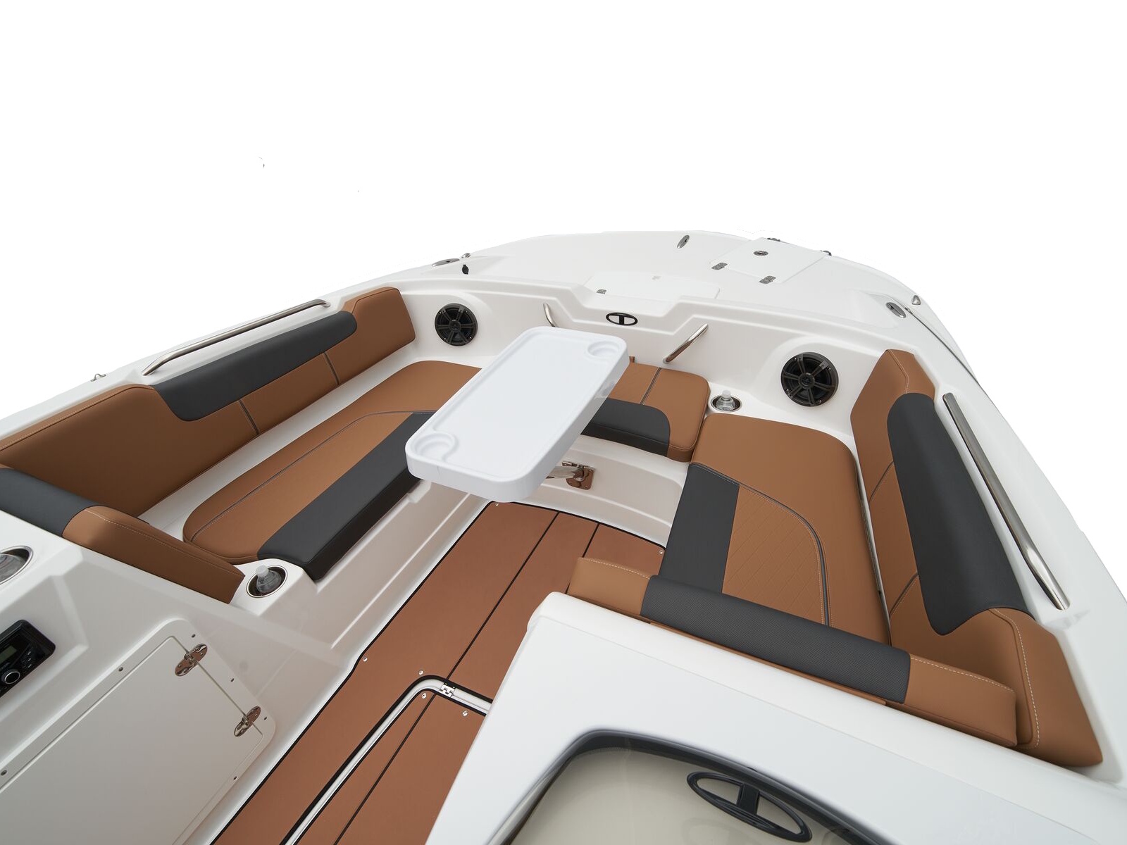 - Aft L-lounge w/storage, tow rope holder & removable 25-qt. (23.66 L) cooler