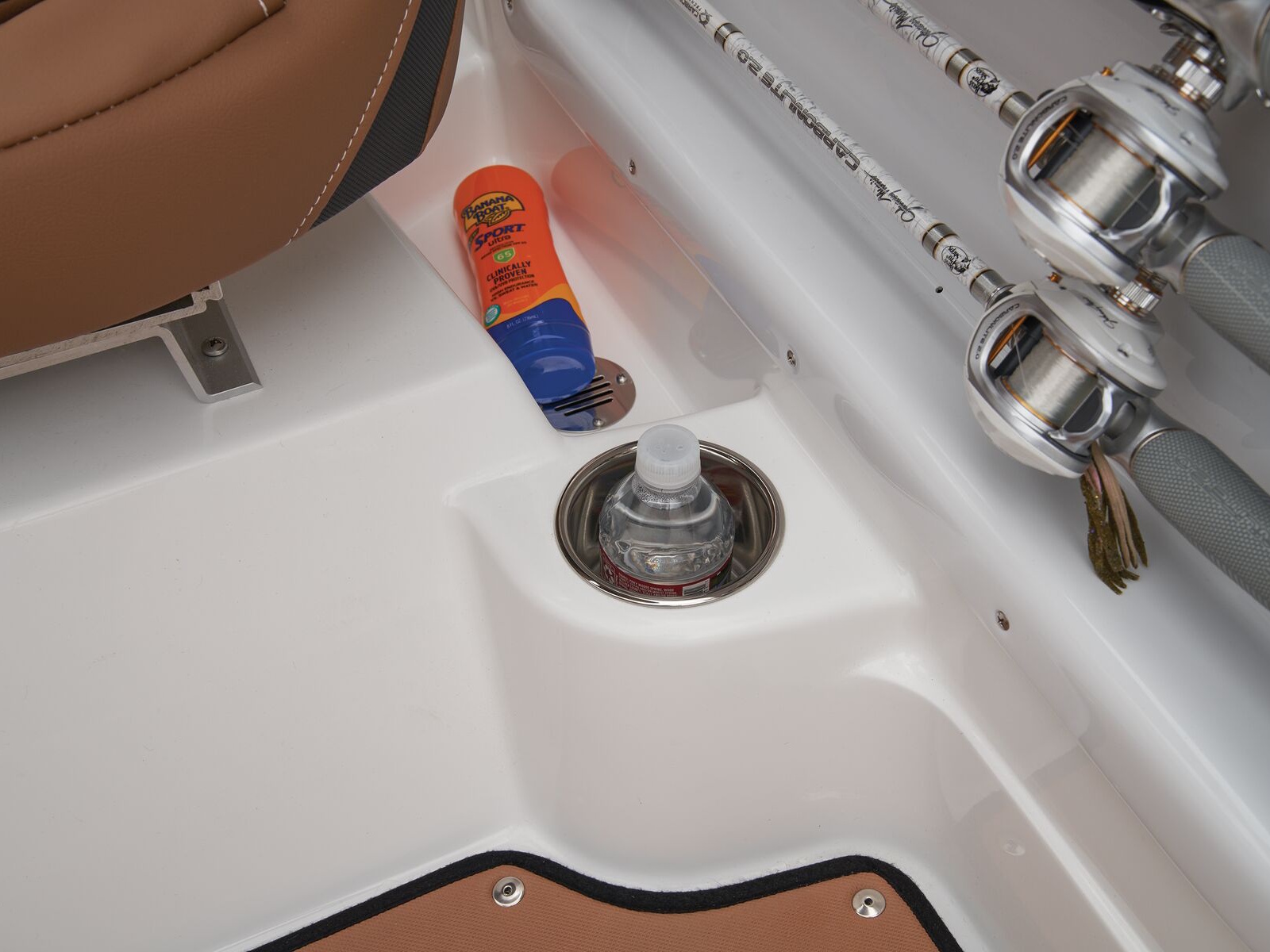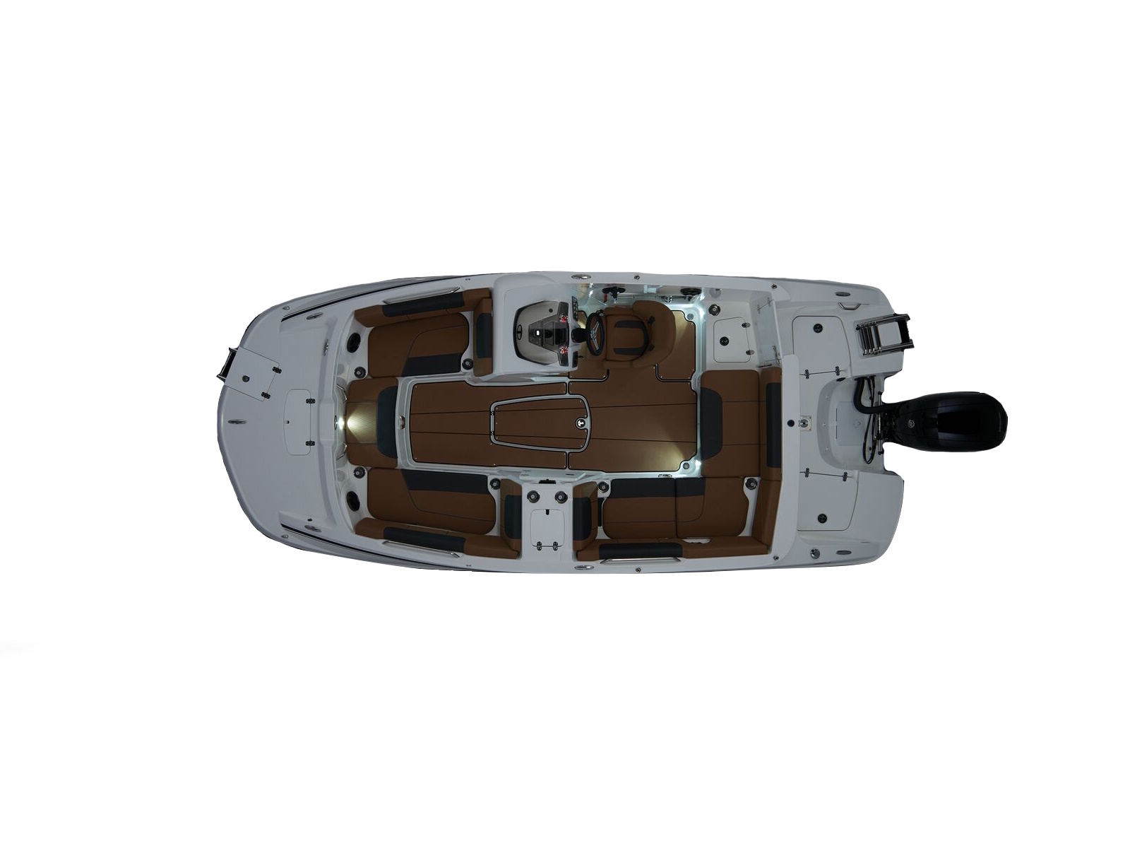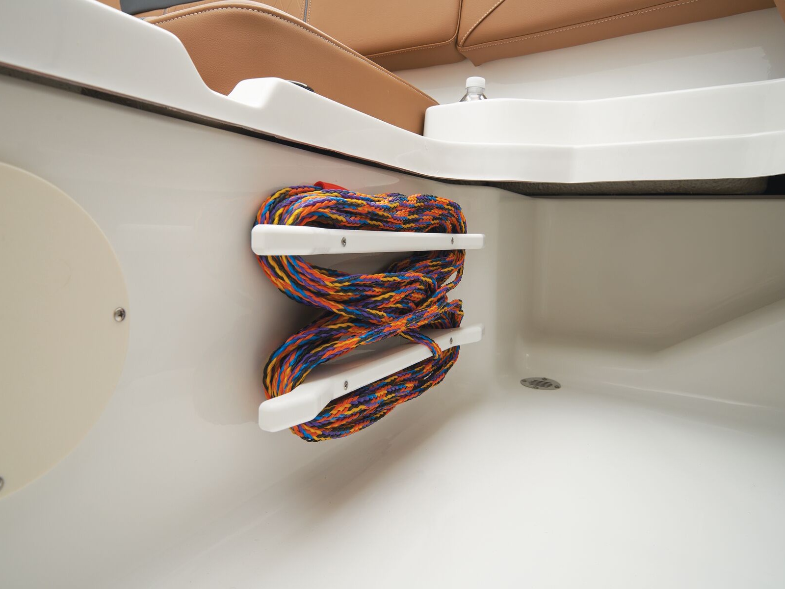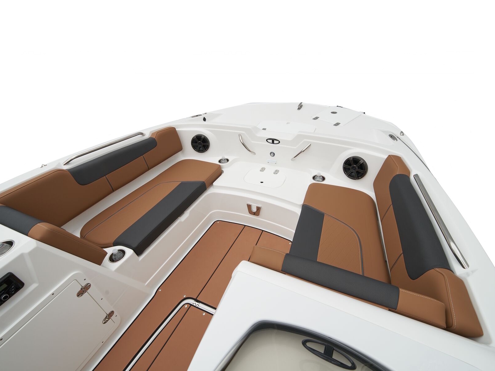 - Aft L-lounge w/storage, tow rope holder & removable 25-qt. (23.66 L) cooler