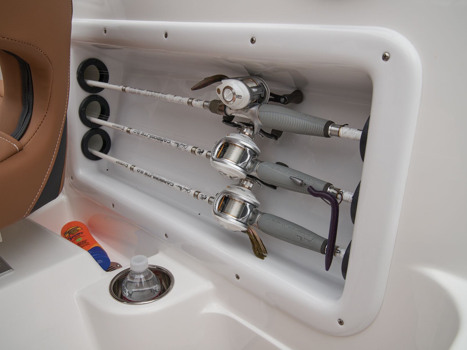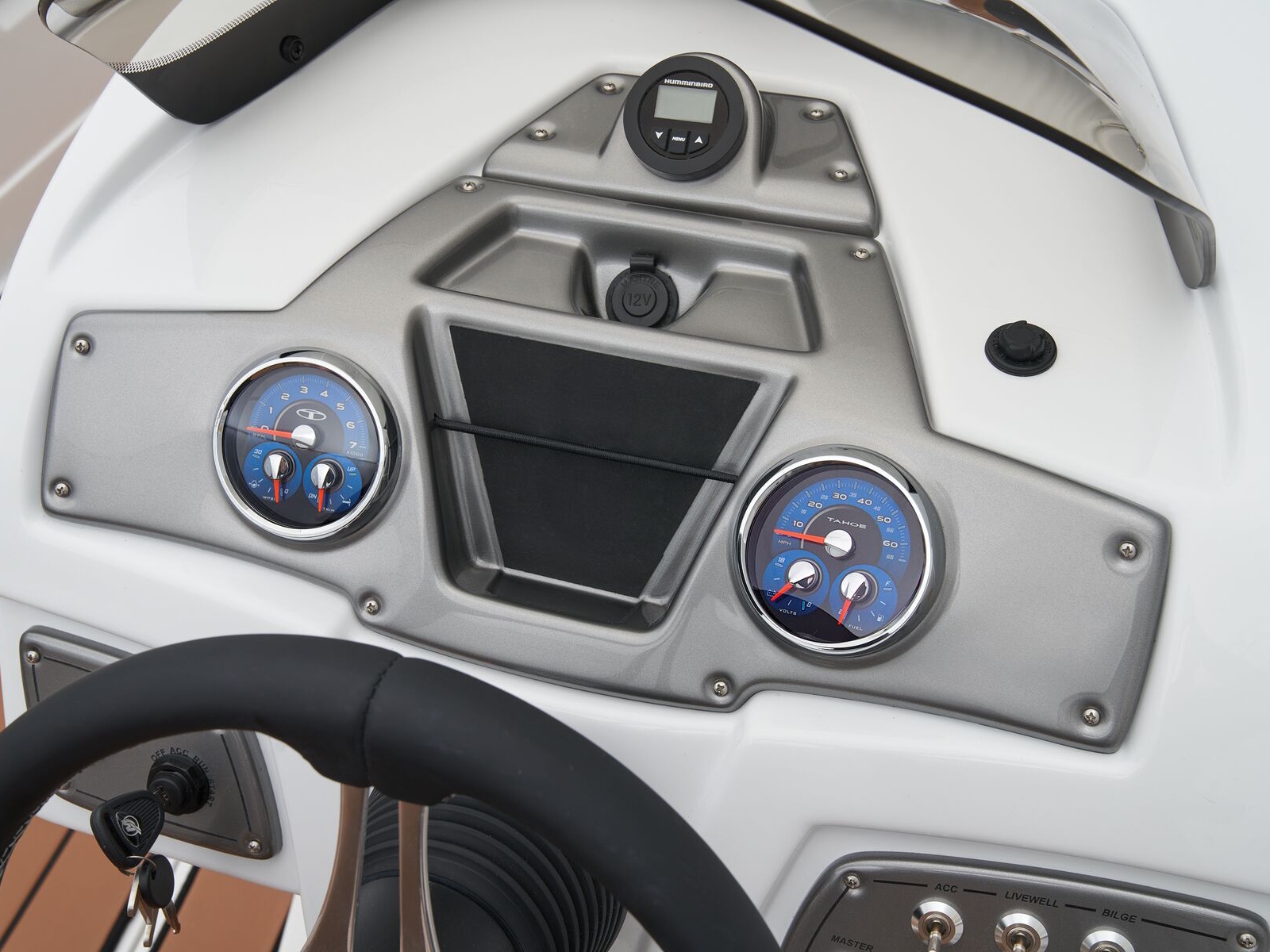 - Bow 11.5-gal. (43.53 L) aerated livewell w/500 GPH (1,892.71 LPH) pump, gravity drain, adjustable spray head & dash-mounted switch