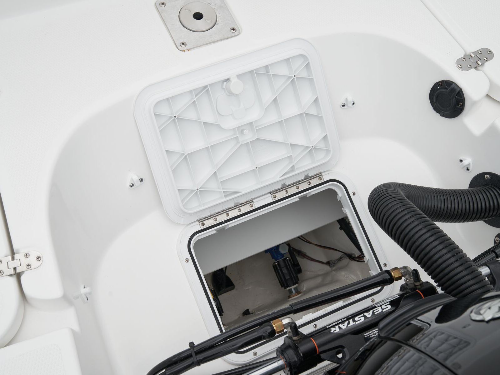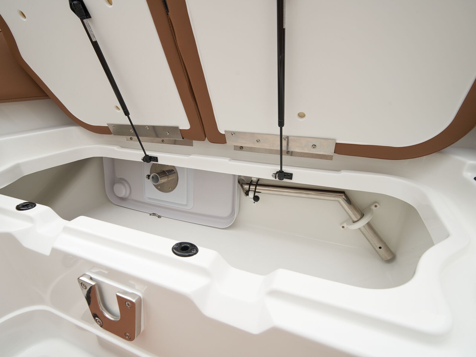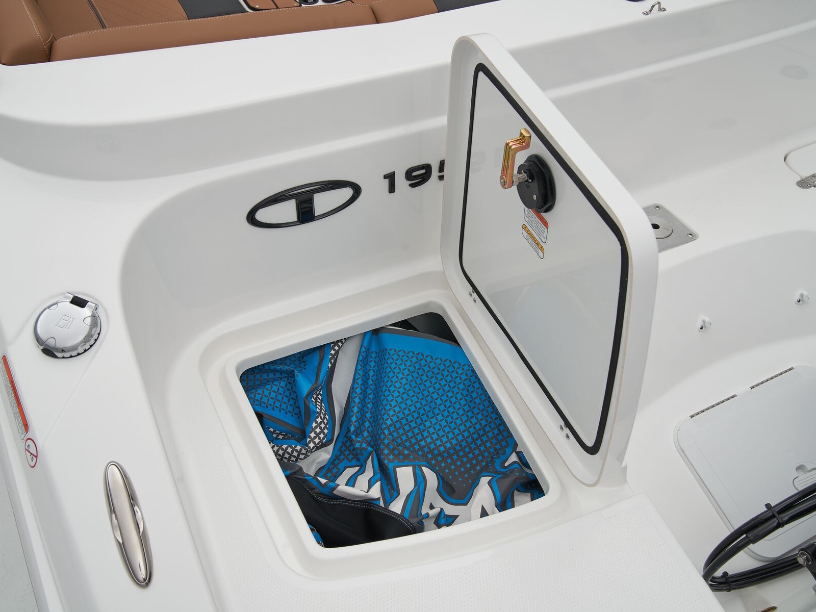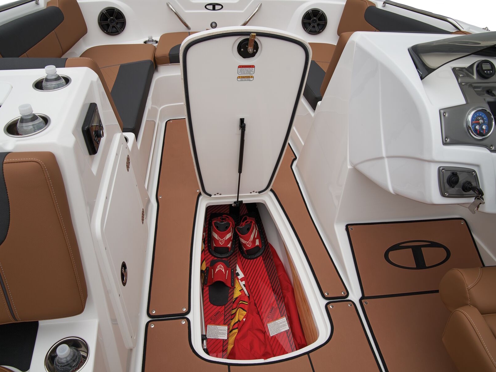 - In-floor wakeboard/ski storage compartment w/hold-open lid assist