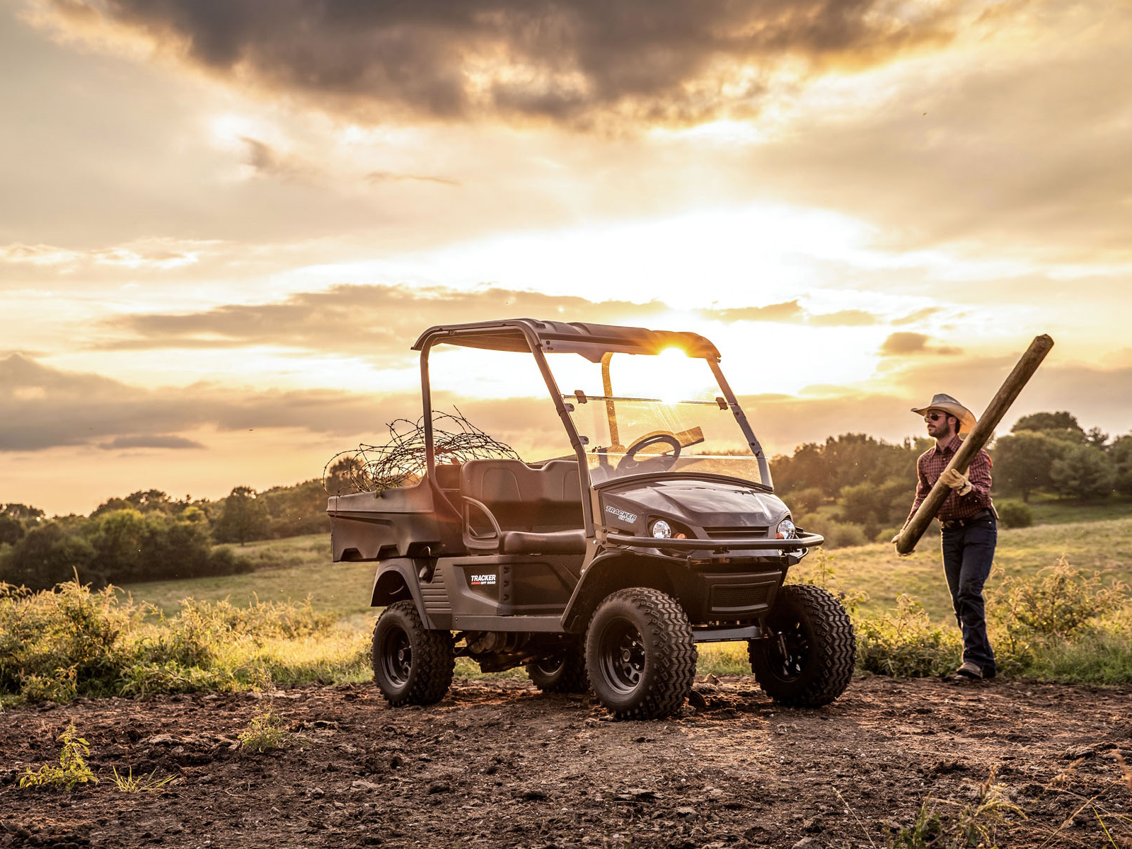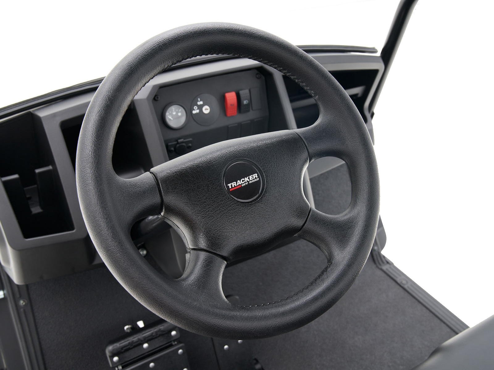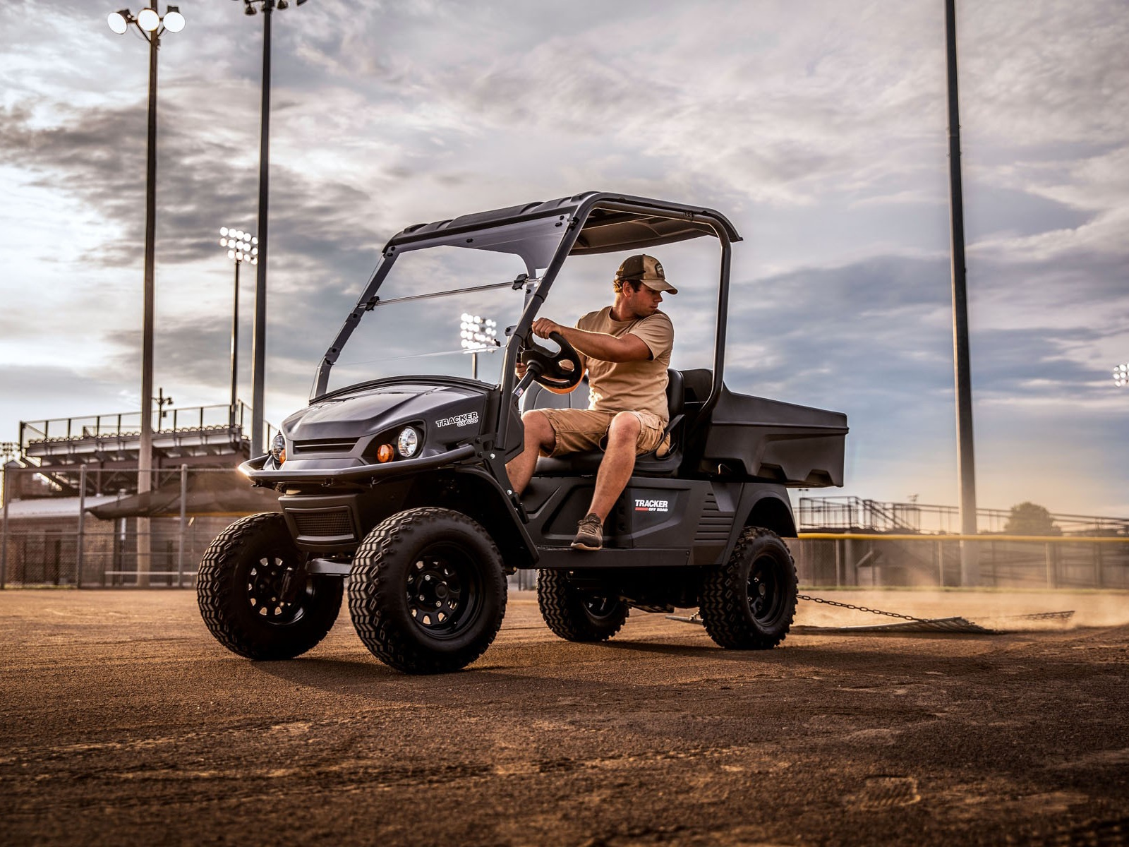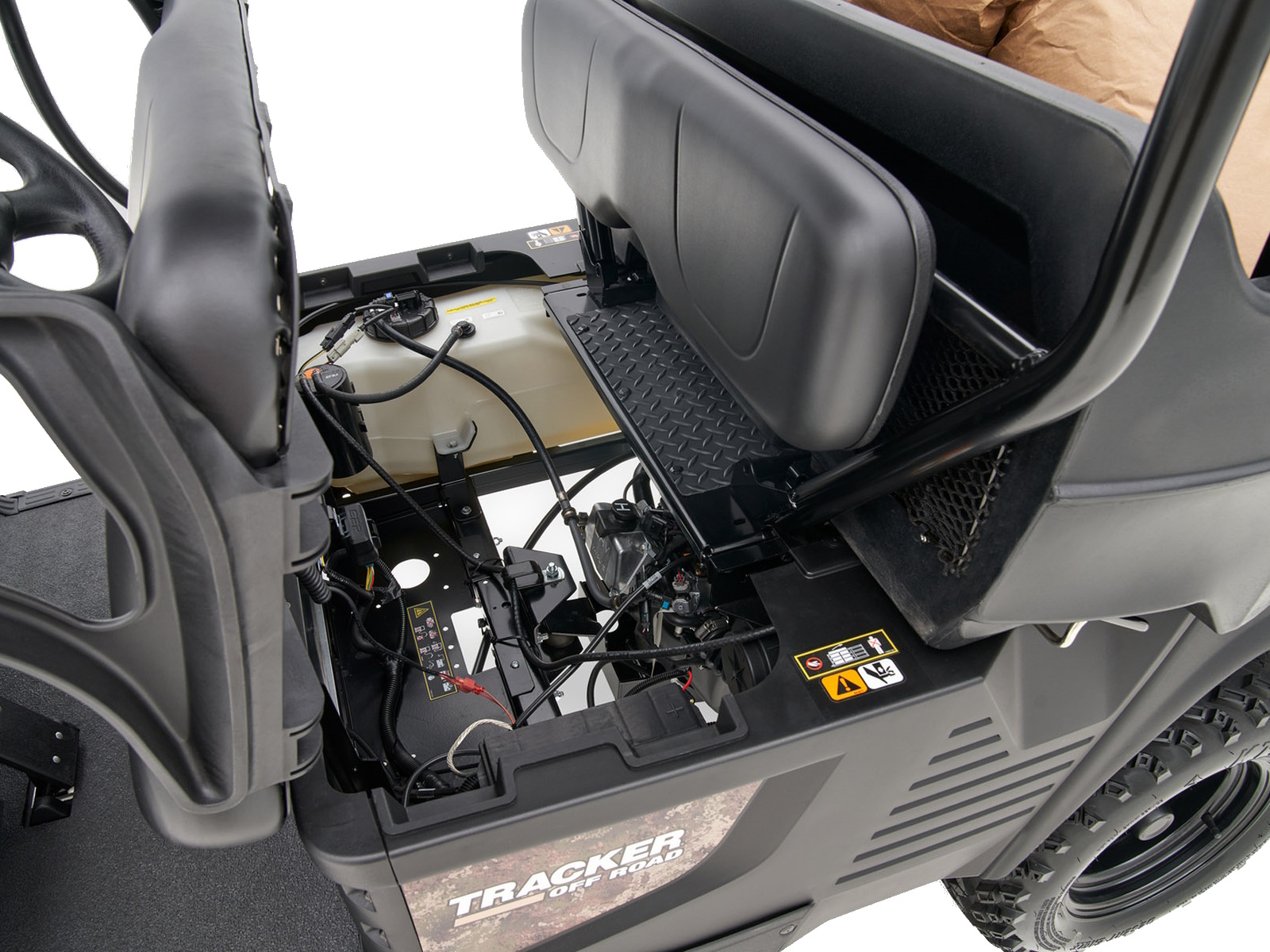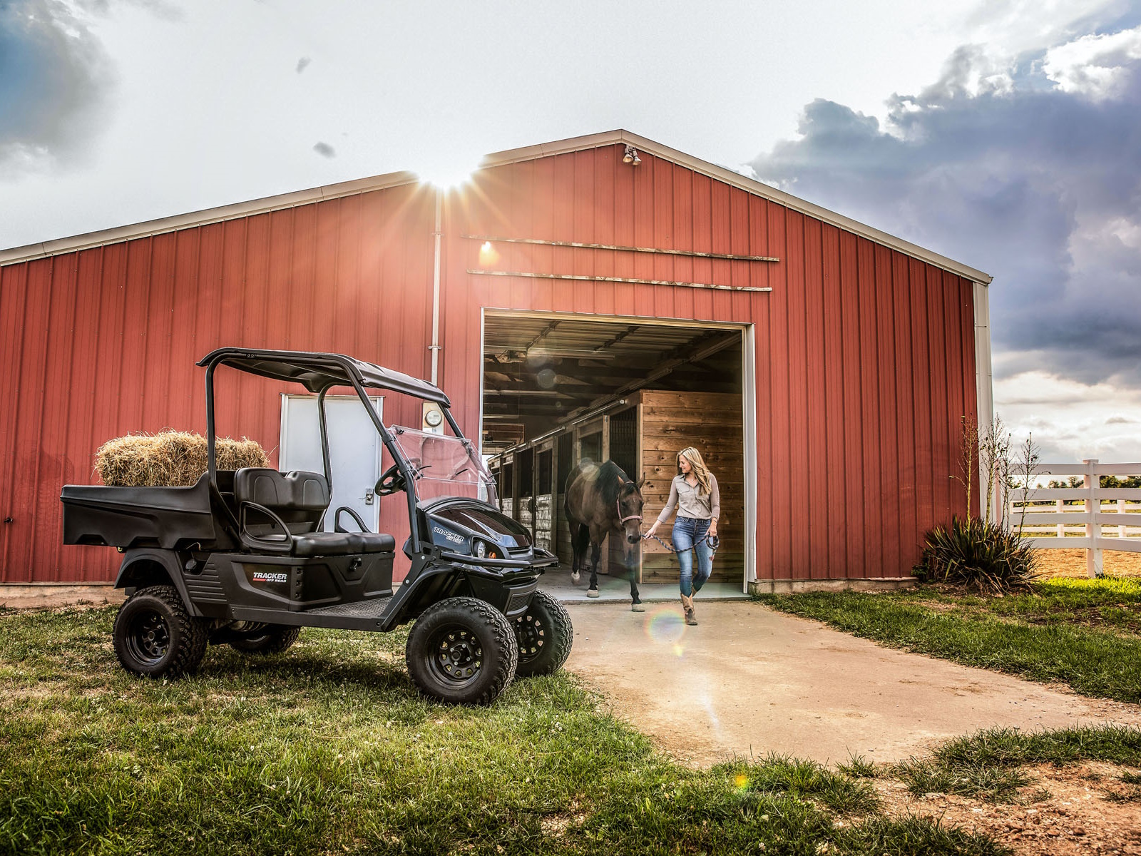 The TRACKER OFF ROAD OX400 is a crossover side-by-side that’s equally at home cruising suburban streets as it is playing in the dirt. Simple, comfortable, and reliable operation gets a dose of off-road prowess by way of a lifted suspension, knobby tires, and a rugged all-weather interior. A 401cc engine delivers exceptional economy and spunk that gets you moving up to 17 MPH. To top it off, the OX400 is fed by a class-leading 6.65-gal. gas tank for the greatest range on the market.