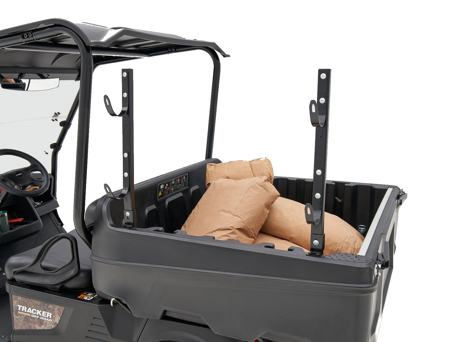 Designed to hold equipment such as pole saws and string trimmers securely outside of the bed.